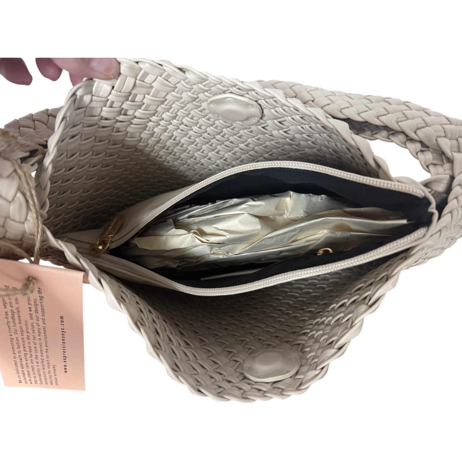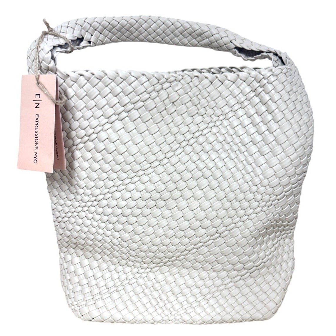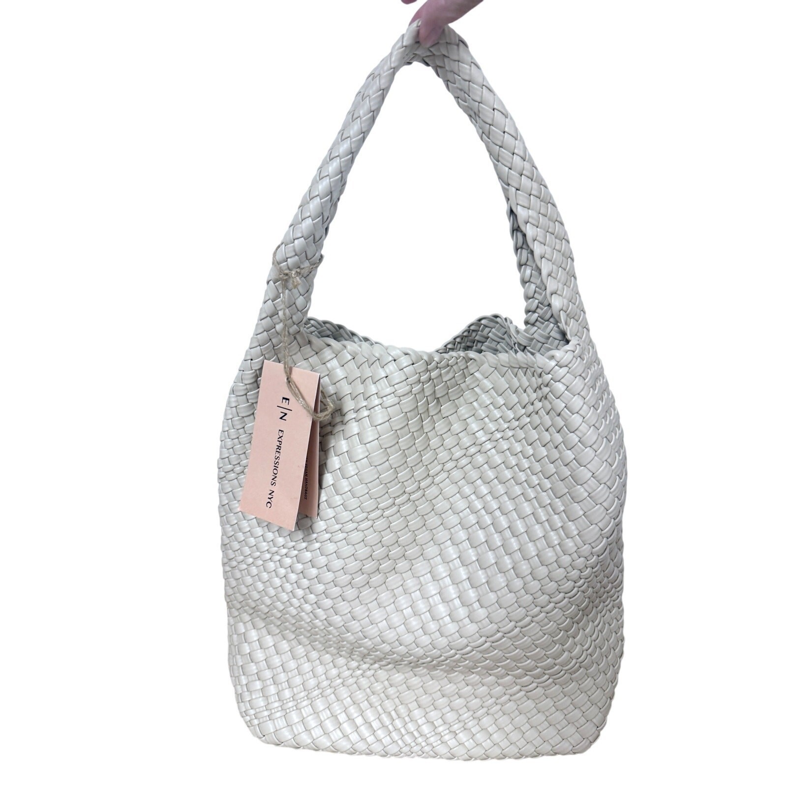 On-Trend Woven Vegan Leather Tote Hobo Shoulder Bag Off White NWT