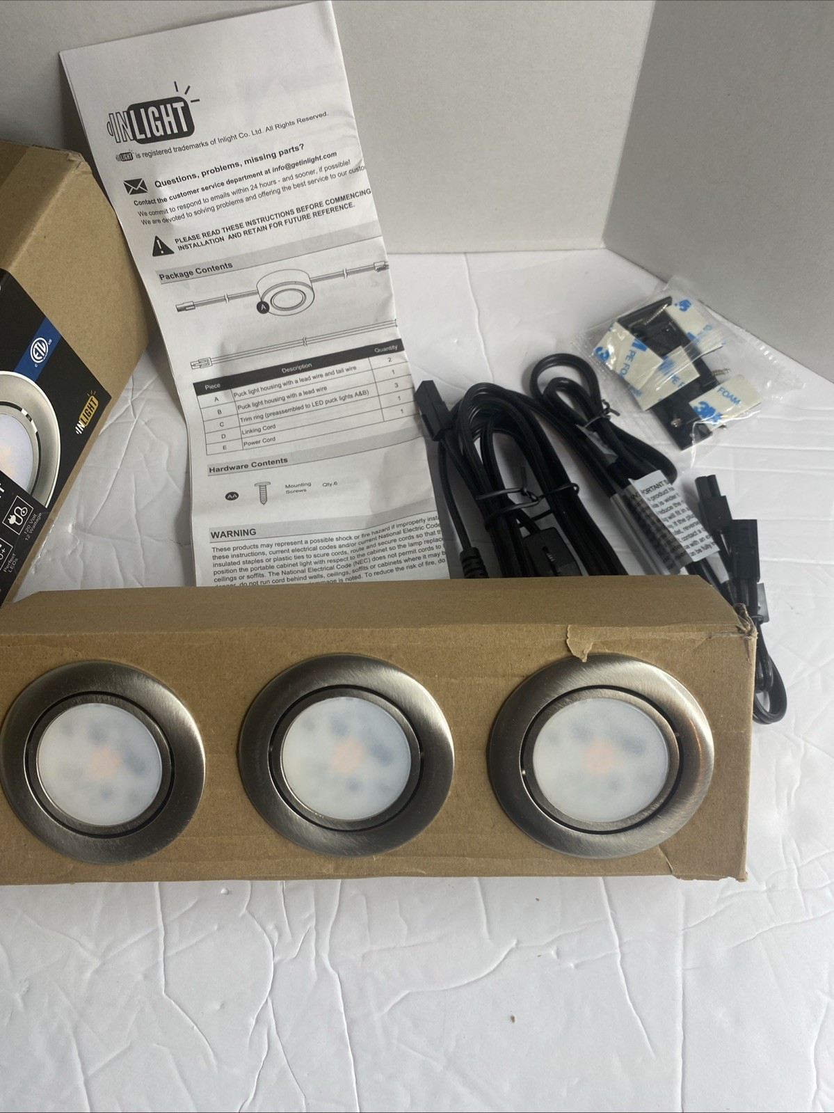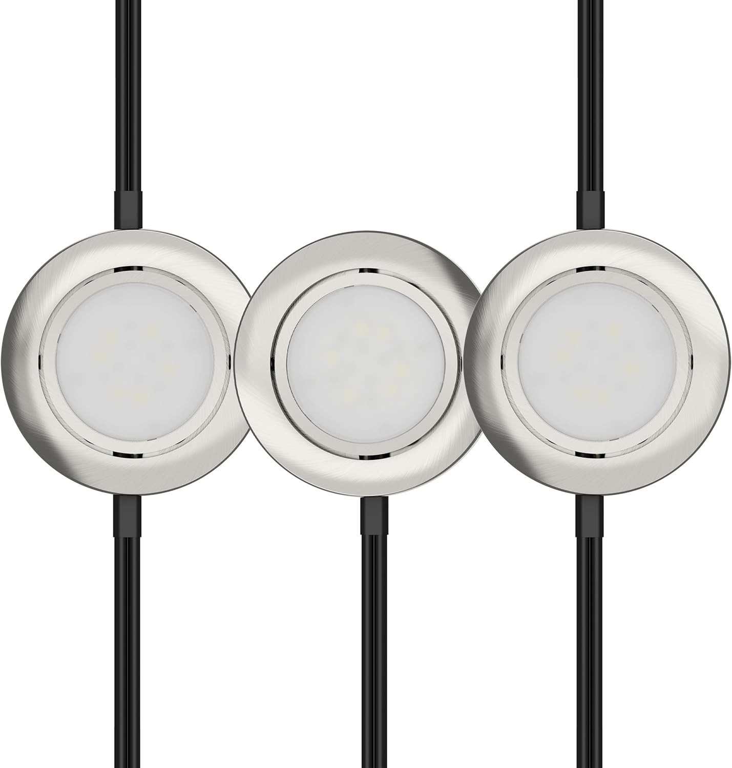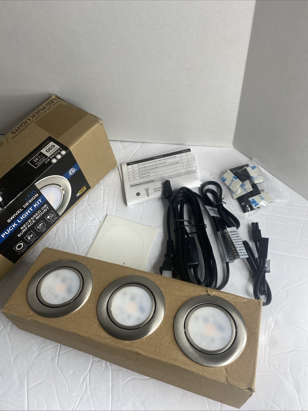 2.75" Wide 2700K Swivel and Dimmable Wired LED Puck 3-Pucks Kit Brushed Nickel
