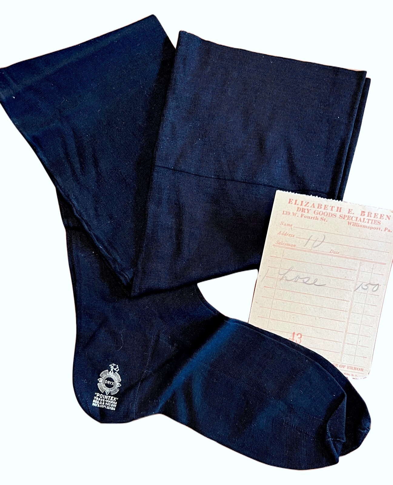 Vintage 1920s Knit Cotton Stockings Black NOS Unused Onyx Pointex Germany 9