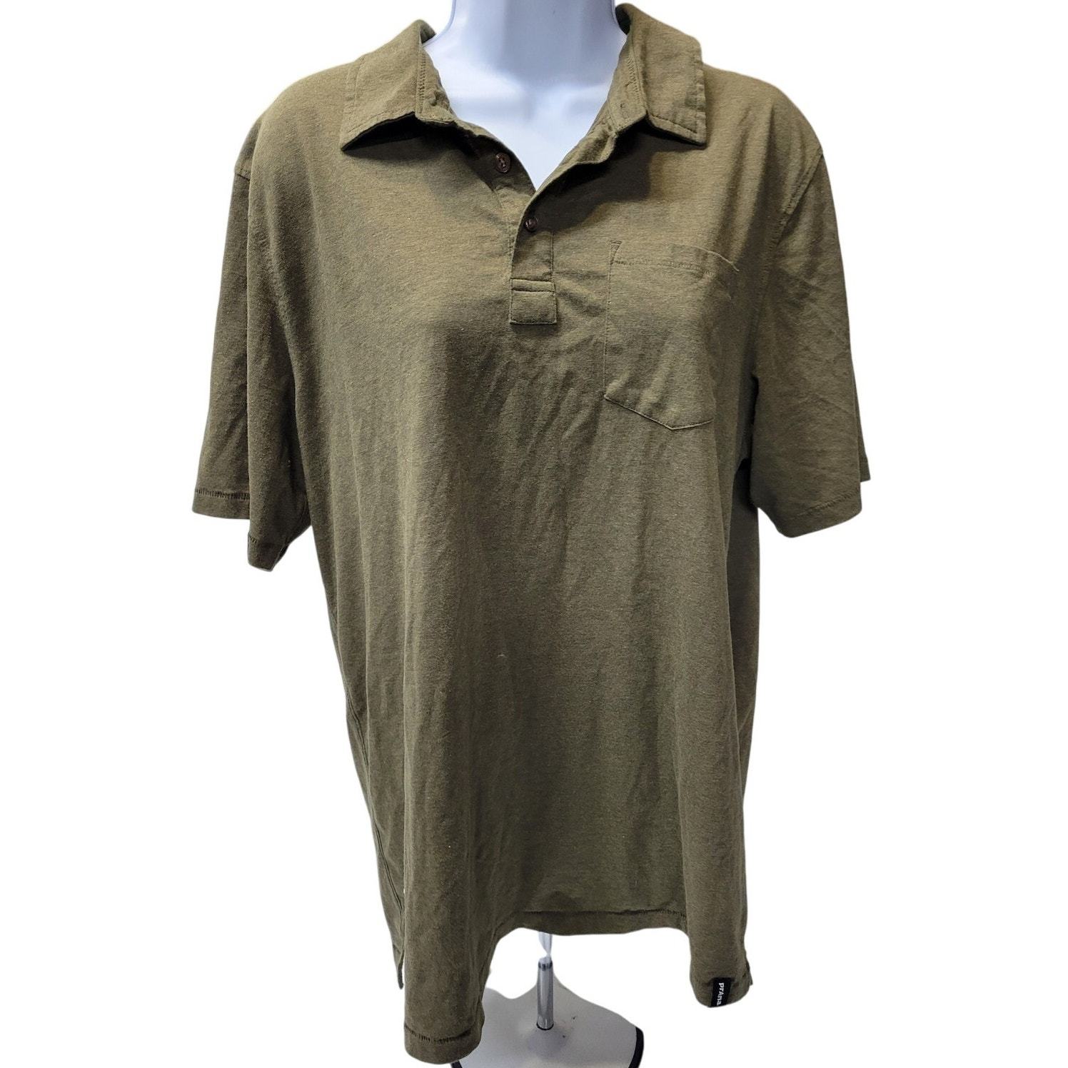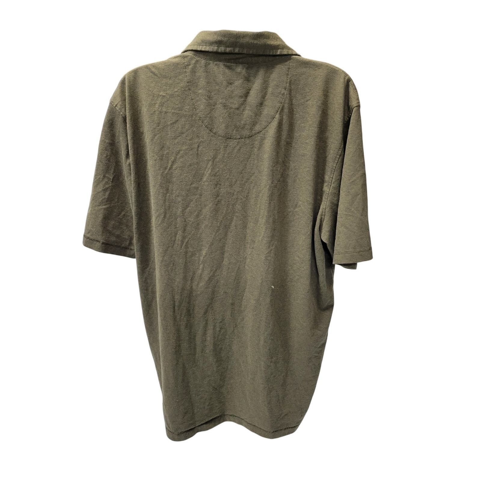 Prana Mens SZ L Green Stretch Button Short Sleeve Athletic T-Shirt Collar Golf