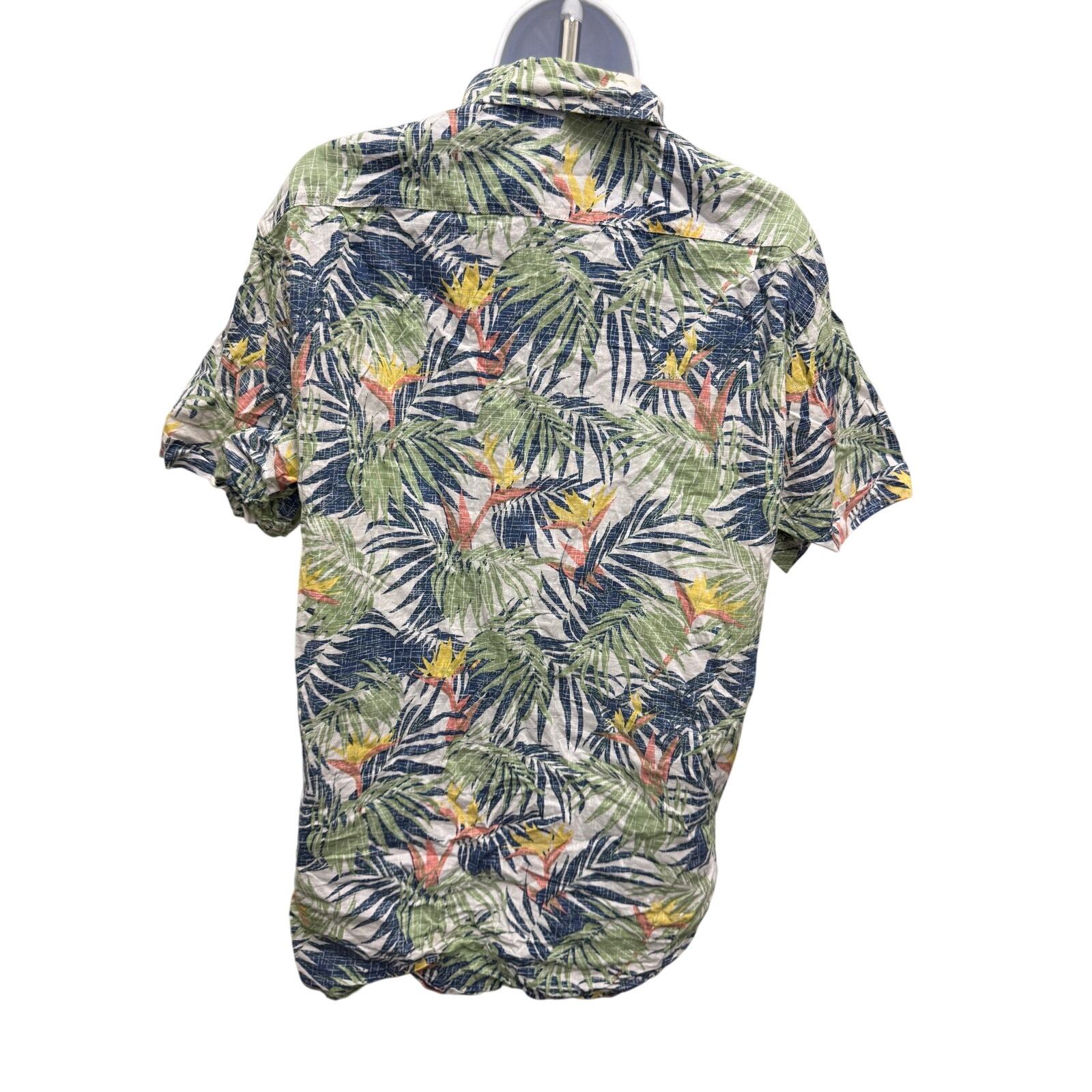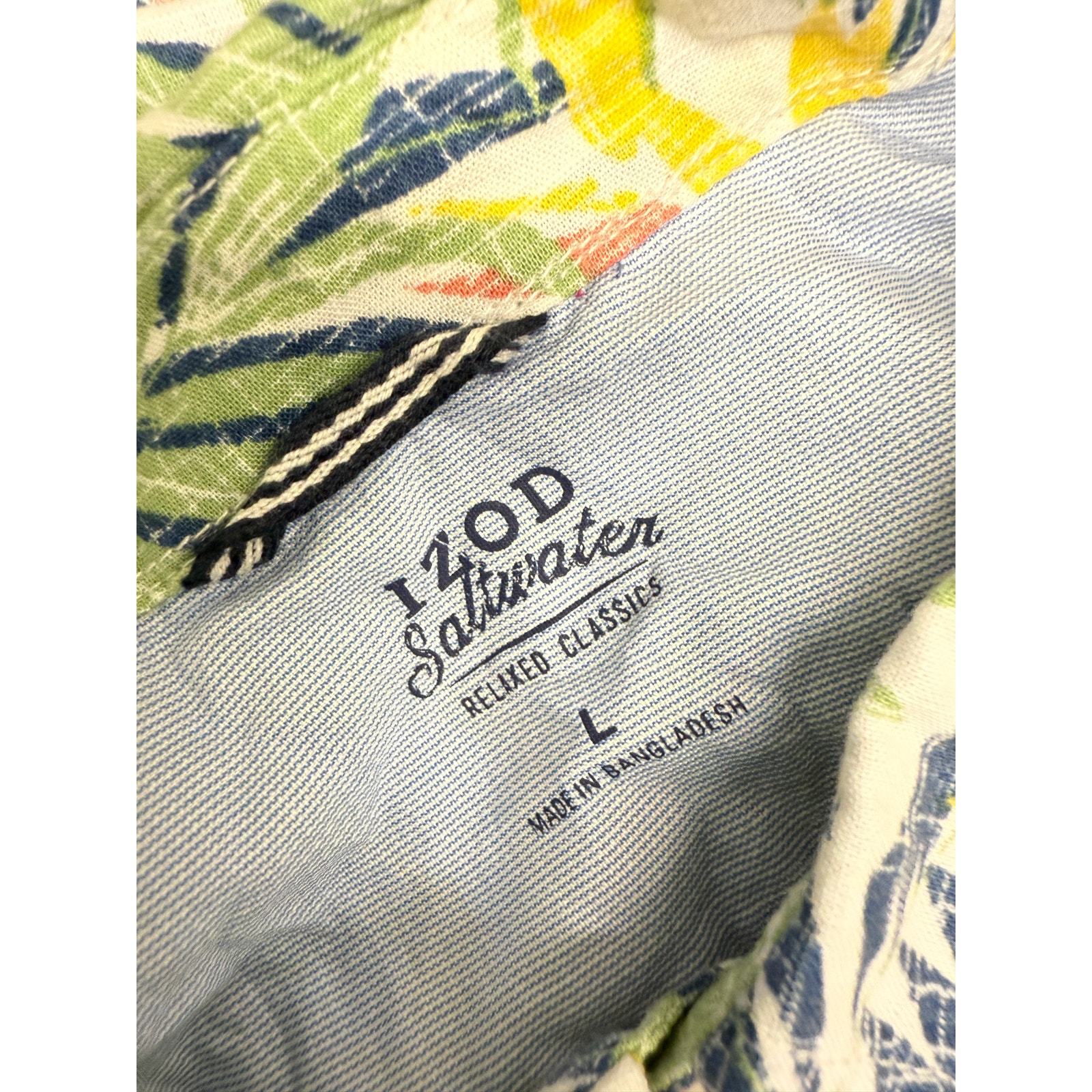 IZOD Signature Hawaiian Shirt Sz L Blue Green Palm Trees Lightweight 100% Cotton