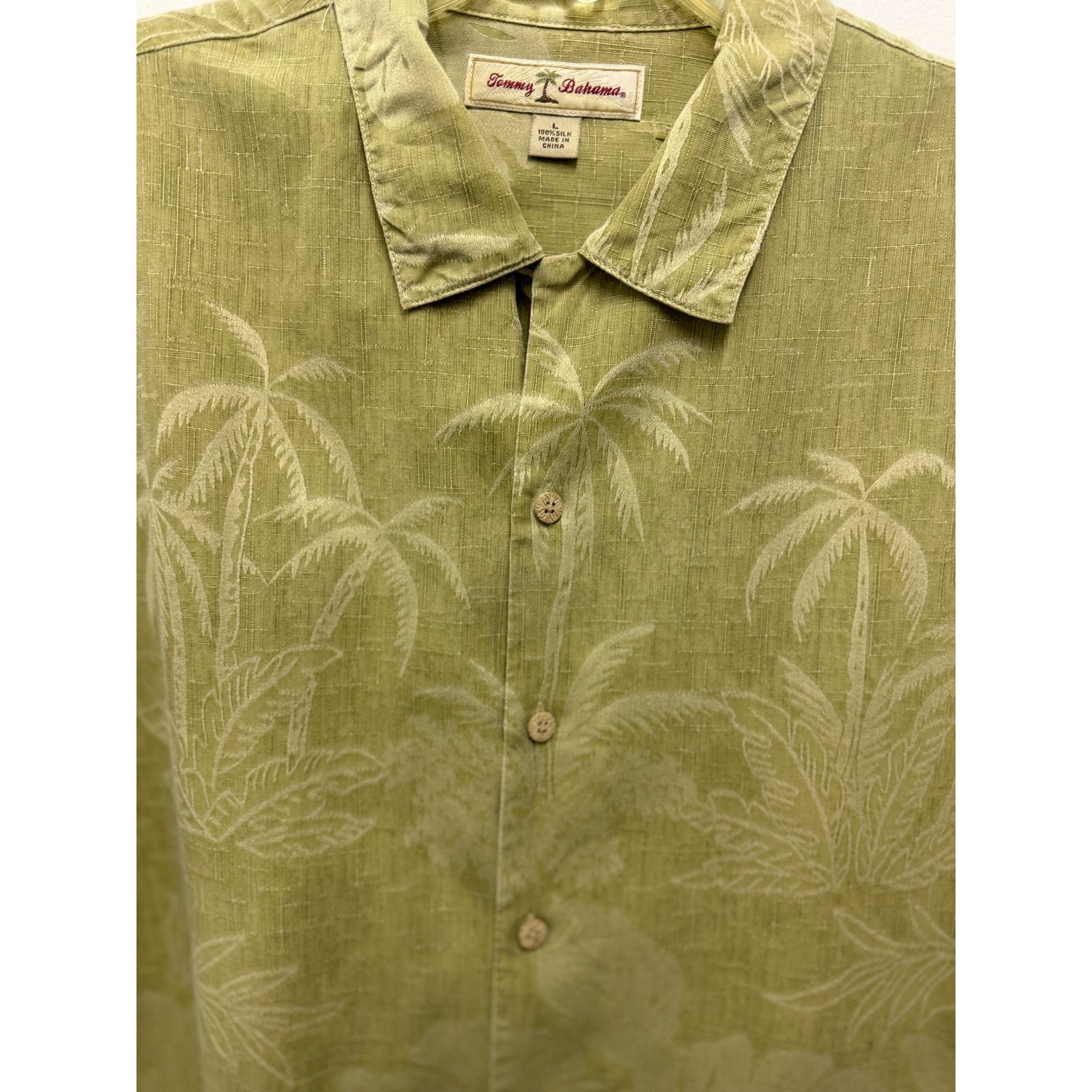 Tommy Bahama Island Zone Hawaiian Shirt L Green Short Sleeve palm tree Aloha