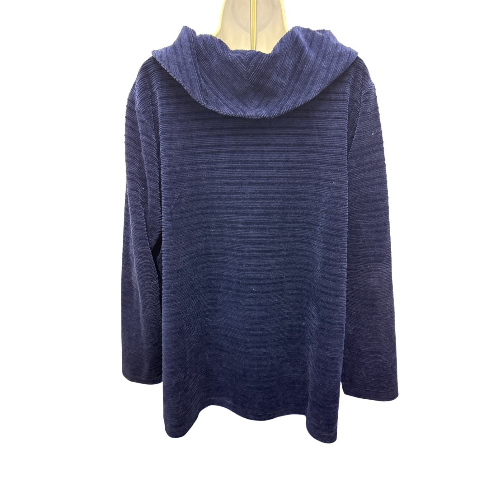 Talbots Women 2X blue Cowl Neck Sweater velvet velor long sleeve warm turtleneck