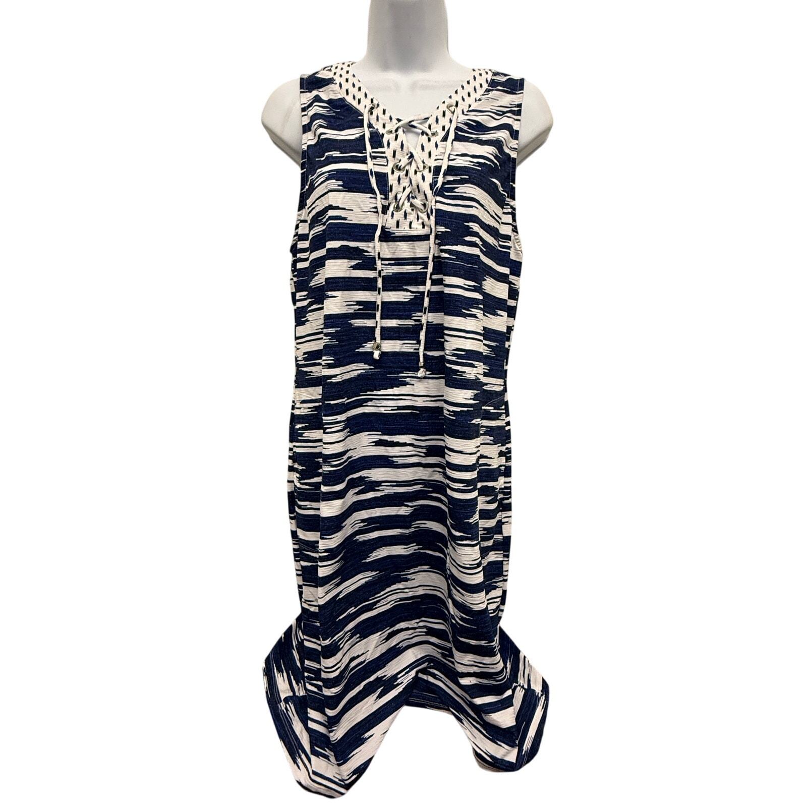 TOMMY BAHAMA WOMENS L sleeveless blue GROMMET knee length white cover up beach