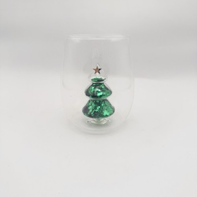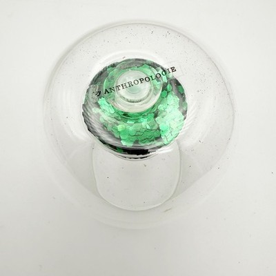 Anthropologie Yuletide Stemless Wine Glass Green Christmas Confetti Tree
