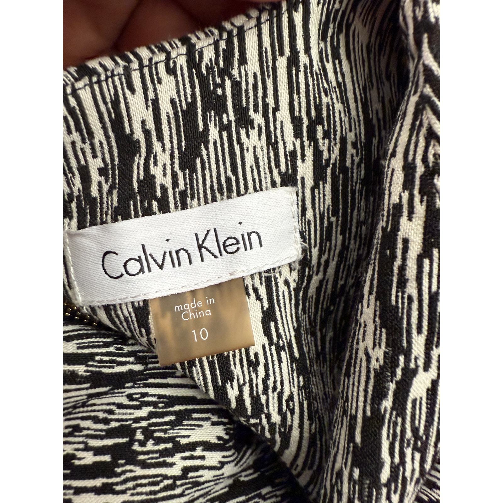 Calvin Klein Women 10 sleeveless black and white print dress
