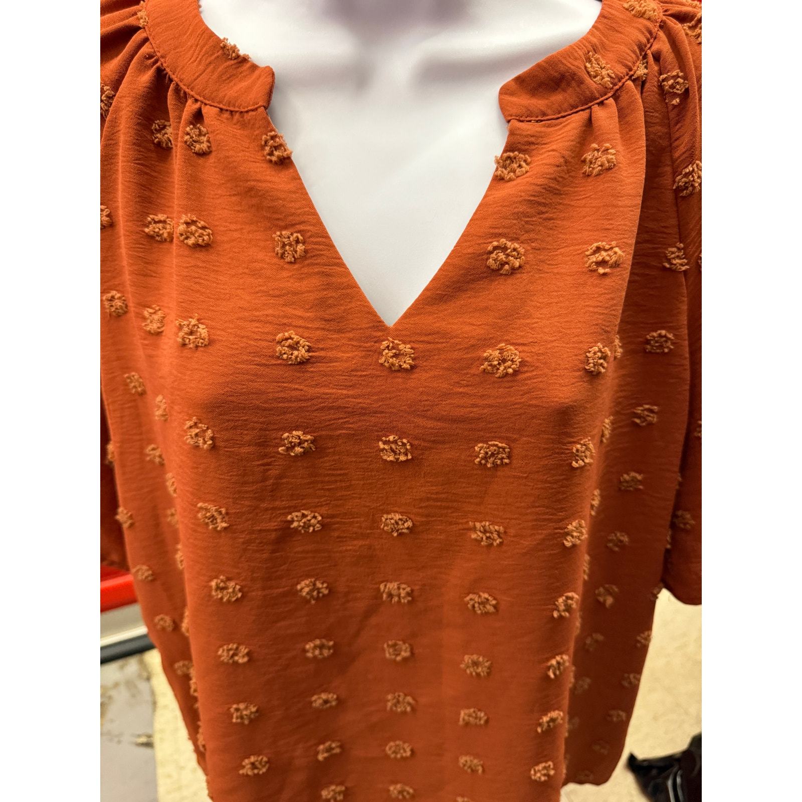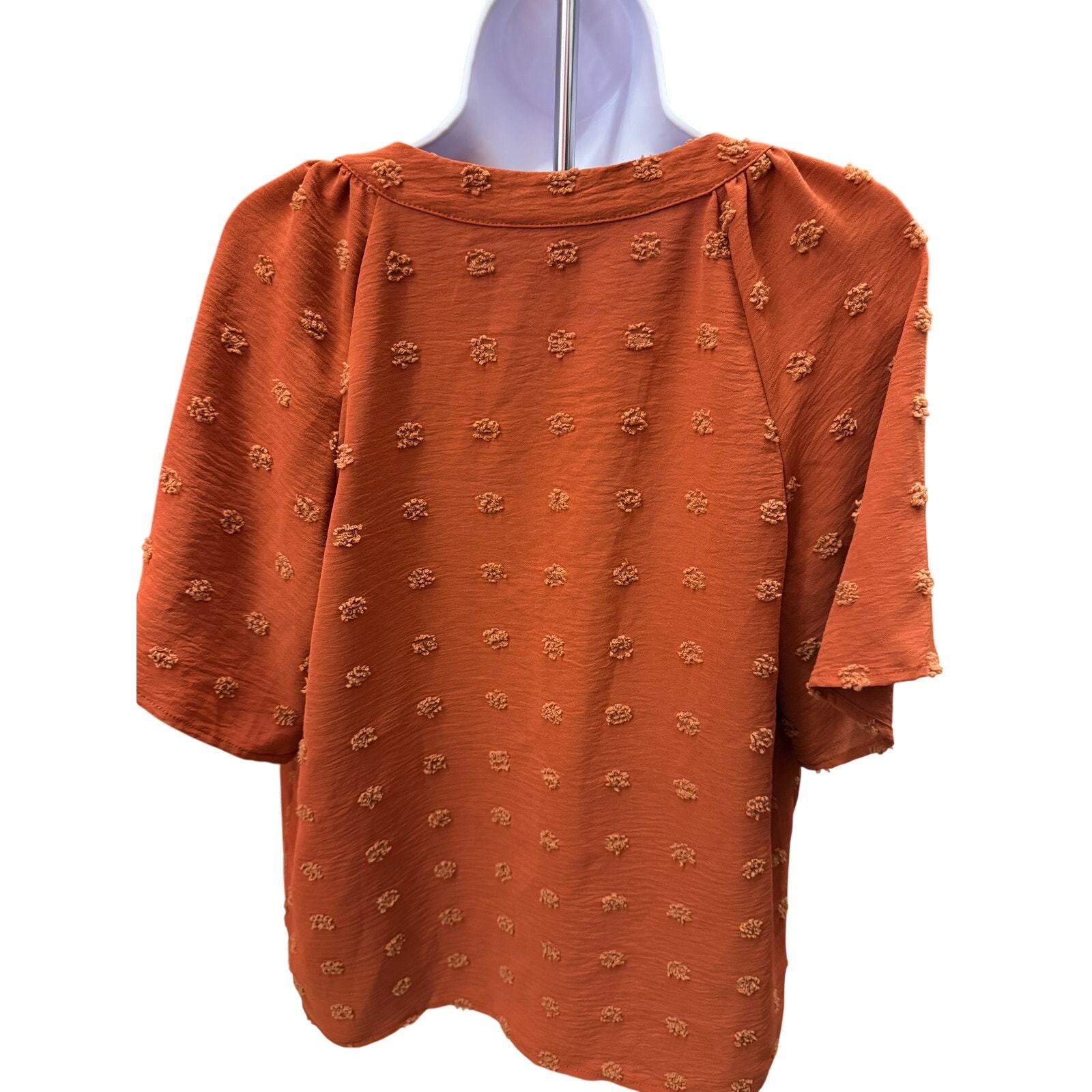 Anrabess Brown Women S Swiss Dot top V-neck blouse