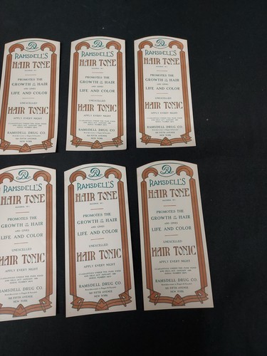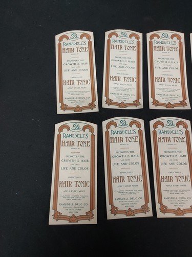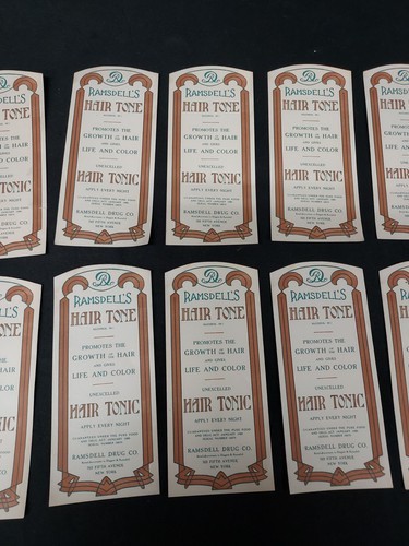OLD Lot 10 Unused Apothecary HAIR TONIC Bottle Labels RAMSDELL DRUG CO. New York