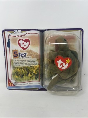 TY STEG The Stegosaurus 1994 Mc Donalds Beanie Baby RARE RETIRED DINOSAUR TRIO