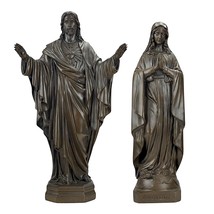 Set Our Lady Blessed Virgin Mary & Jesus Real Bronze Religious Statue Sculpture