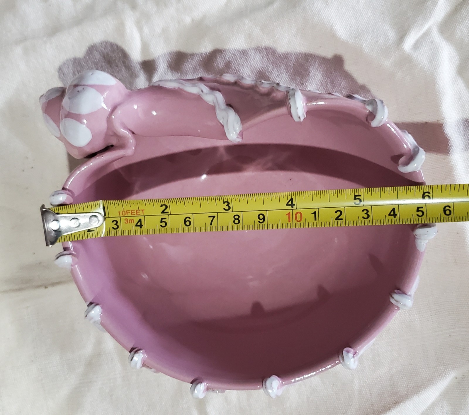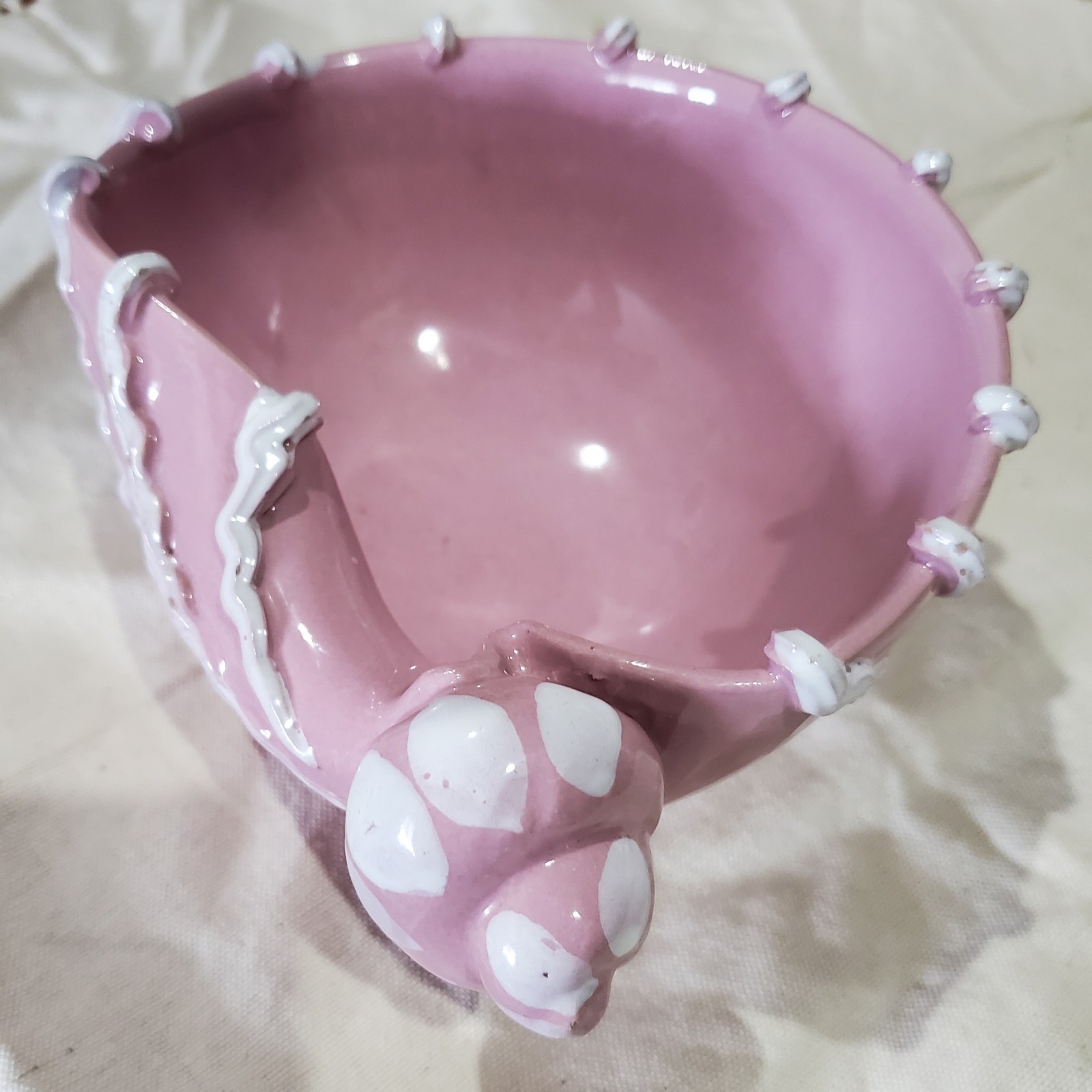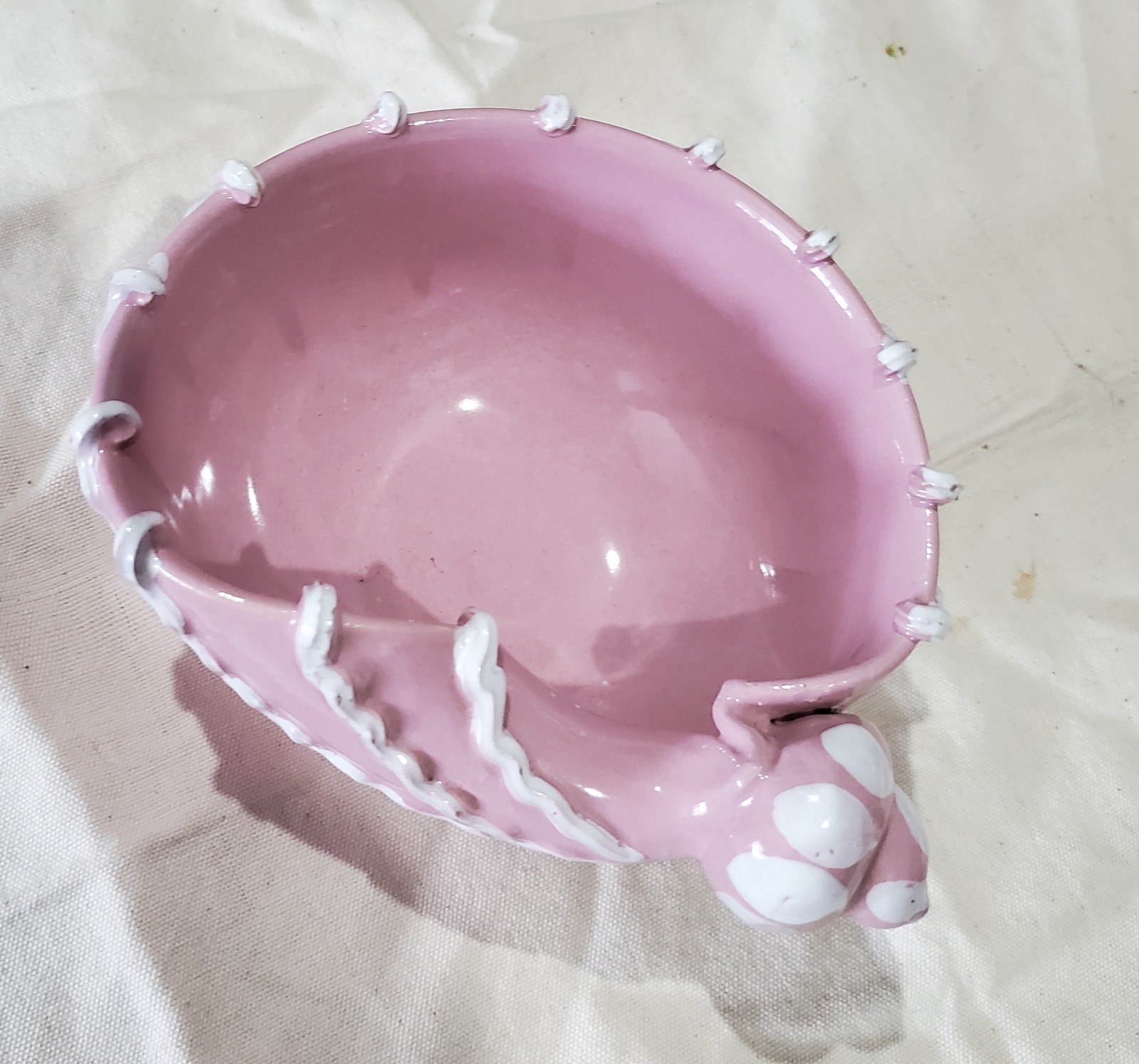 Vintage Italy MCM Decorative Pink Pottery Bowl Planter Conch Shell Signed