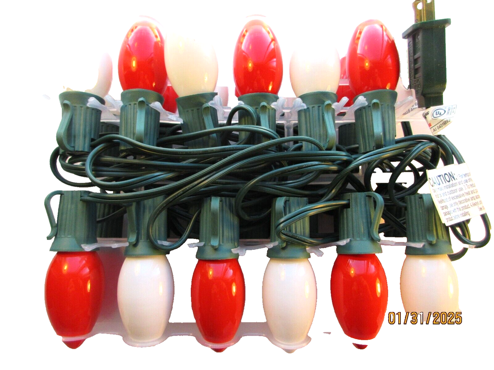 This red and white C9 incandescent string is used by homeowners to create vibrant, nostalgic holiday displays on porches, eaves, large trees, or fence lines. The alternating color scheme evokes classic Christmas cheer and pairs well with traditional decor themes, making it ideal for suburban homes or community light displays. Commonly installed along roof peaks or wrapped around mature evergreens, the large C9 bulbs and ceramic bases ensure high visibility and safe operation near heat-sensitive materials. With UL certification and simple plug-in setup, it delivers dependable, warm-glow performance for those who appreciate the timeless appeal of incandescent lighting?perfect for crafting a festive, welcoming atmosphere that balances bold color, tradition, and seasonal spirit.