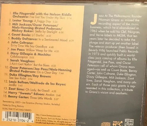 PABLO - ORIGINAL JAZZ CLASSICS SAMPLER - 15 TRACKS- VG+ RARE & OOP CD
