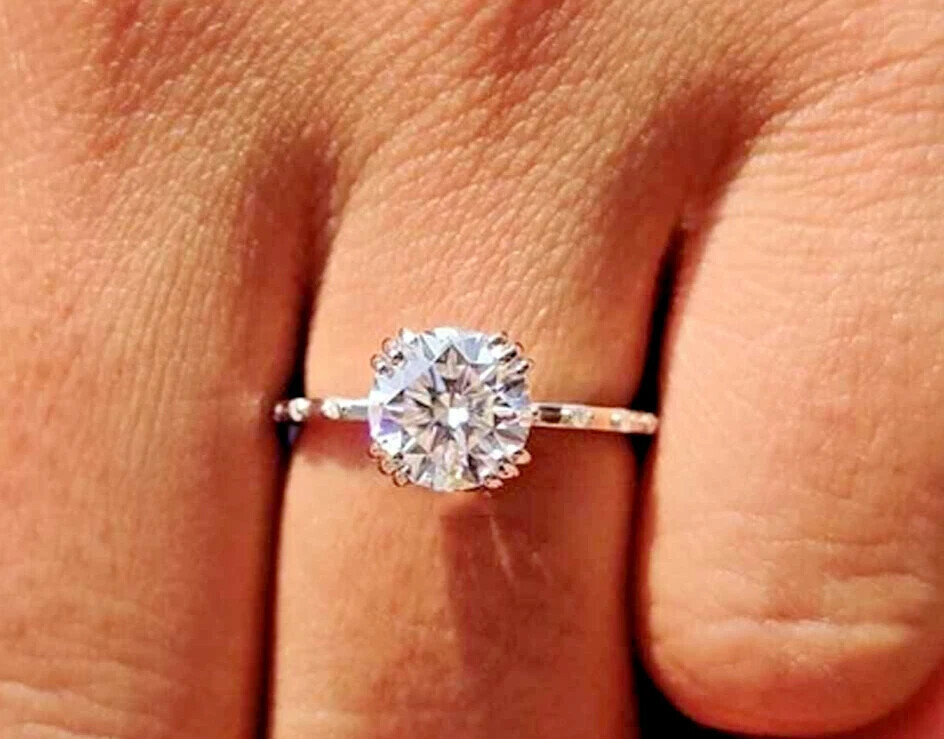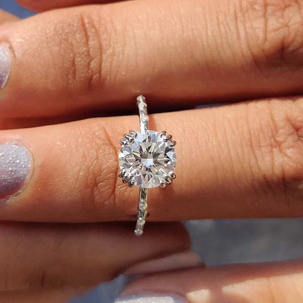 1.00 Cts Round Cut F VVS1 Lab Grown CVD Diamond Ring Solitaire 14k White Gold