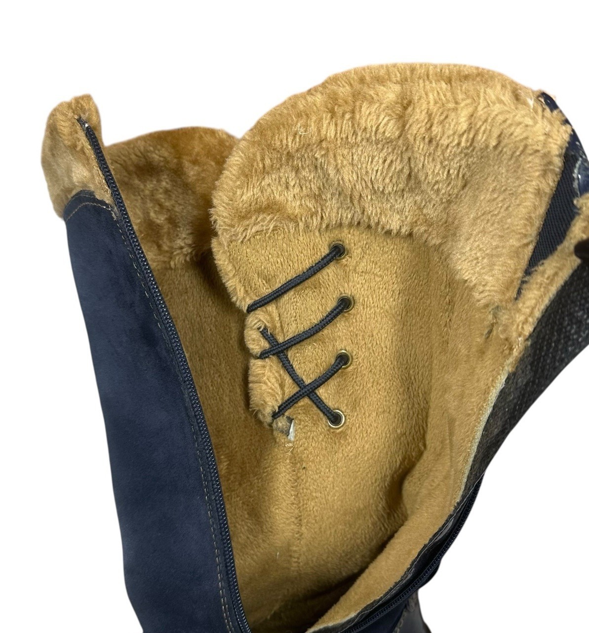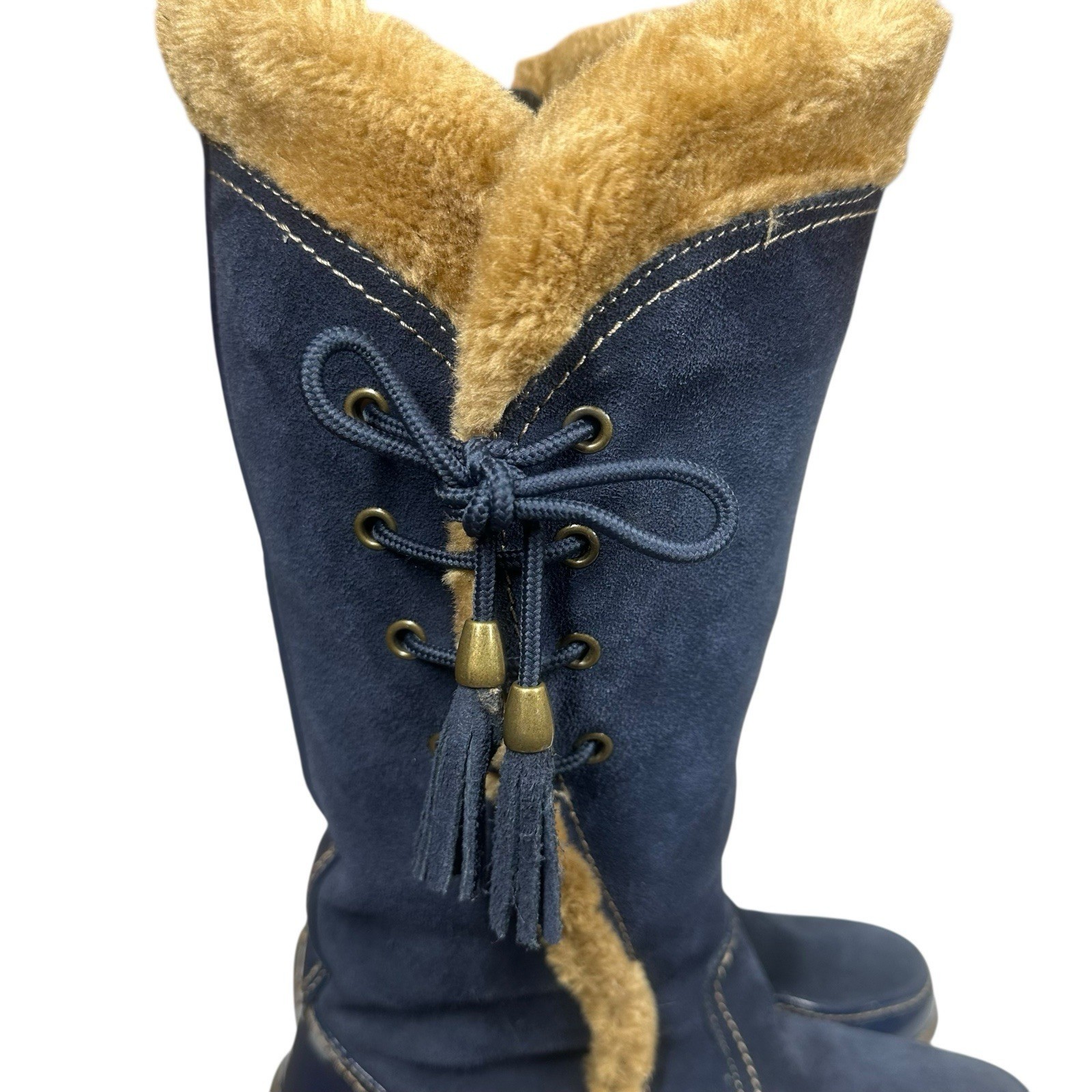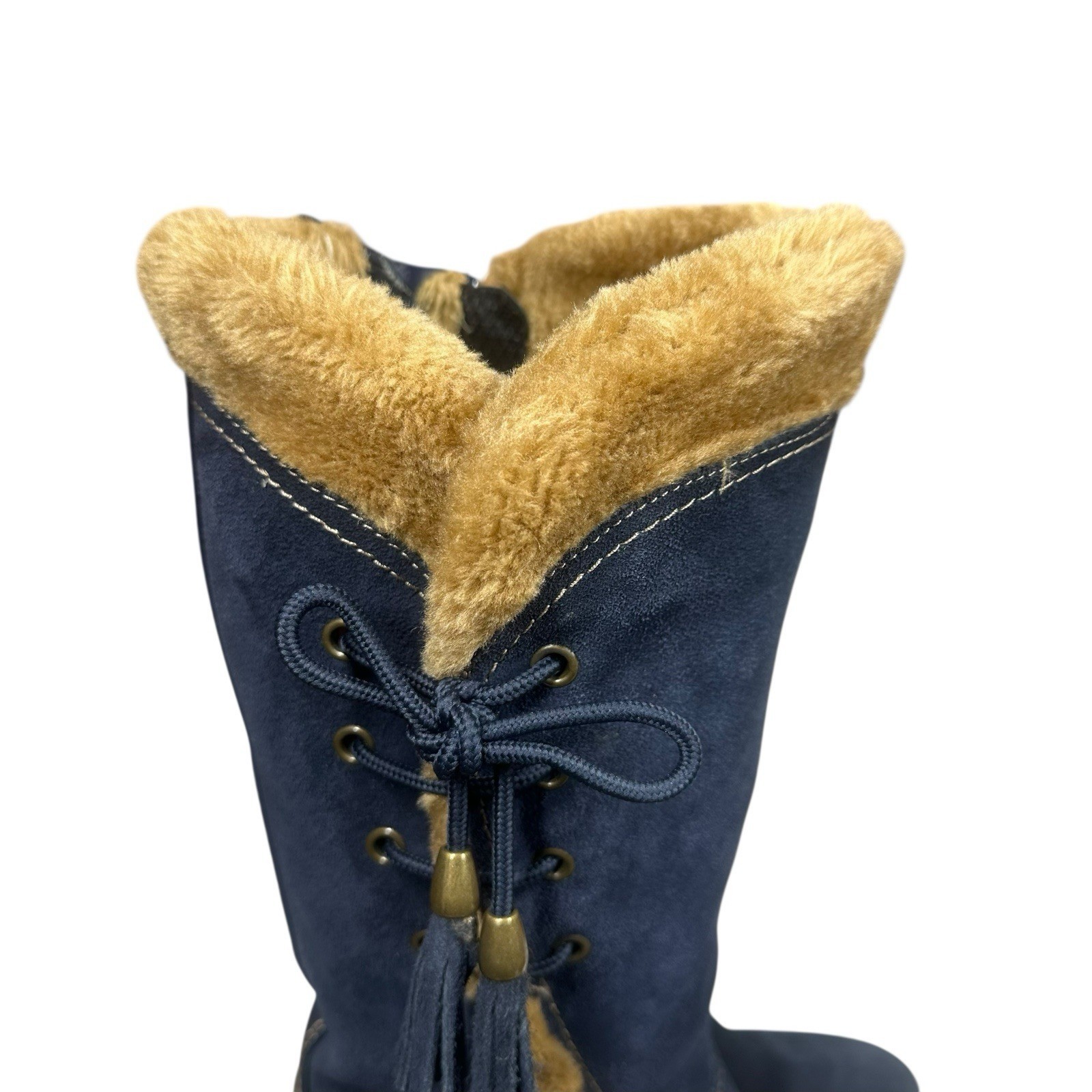 Sporto Side Winder Navy Blue Suede Boots Womens 8.5 Waterproof Faux Fur Tassels