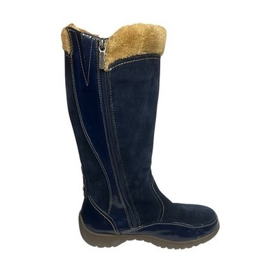 Sporto Side Winder Navy Blue Suede Boots Women's Size 8.5 Waterproof Faux Fur Tassels
