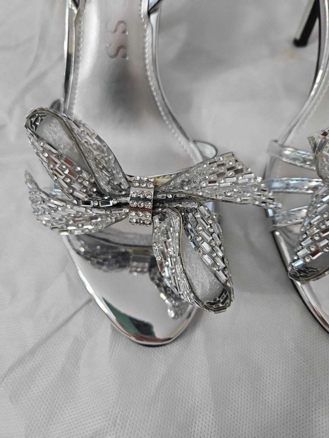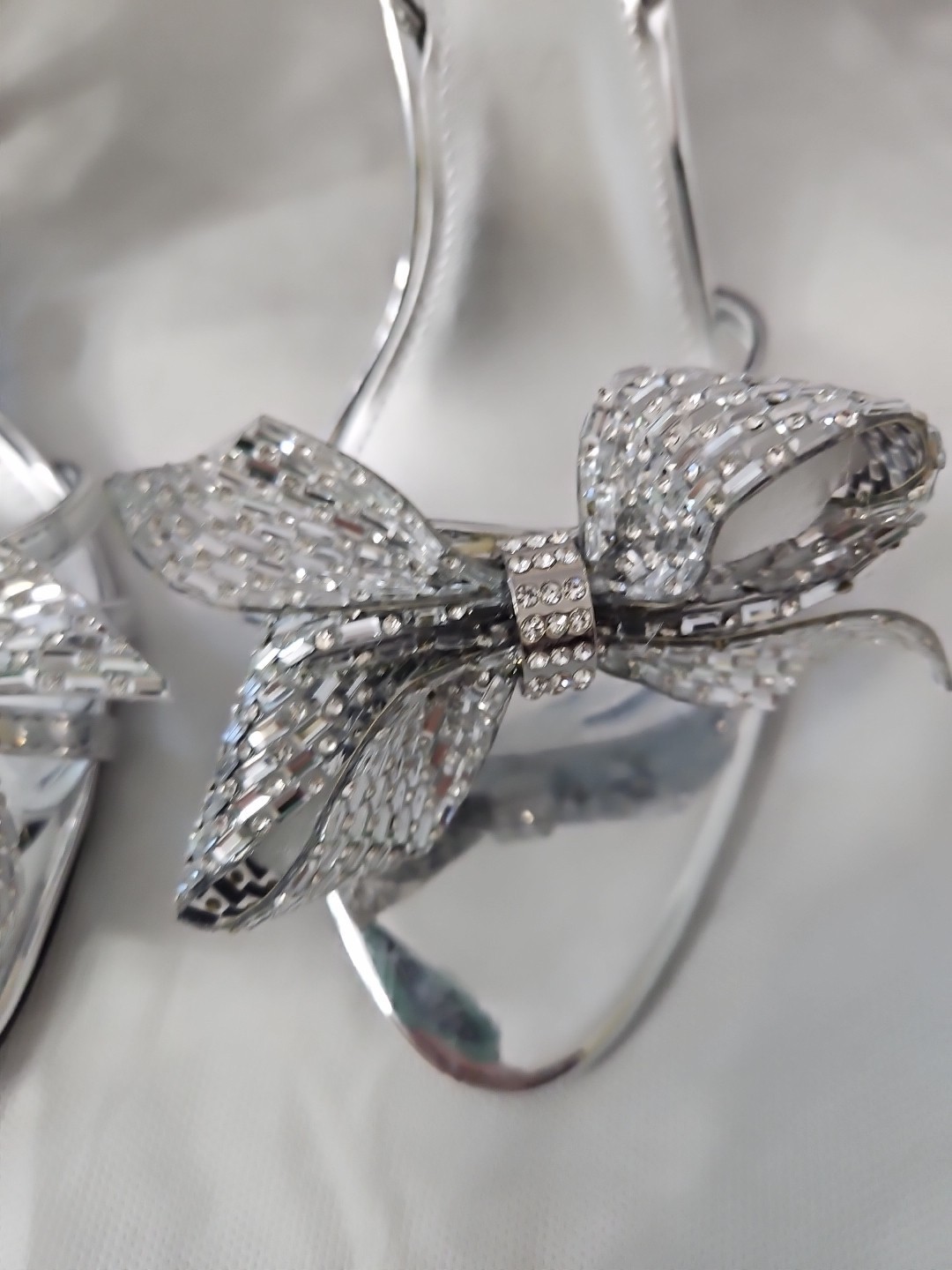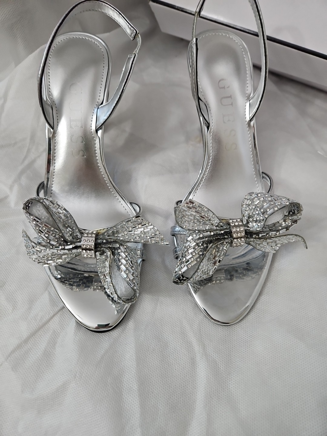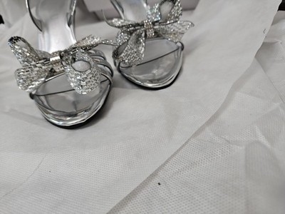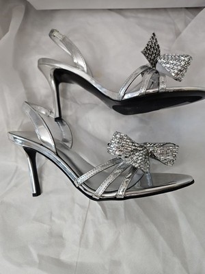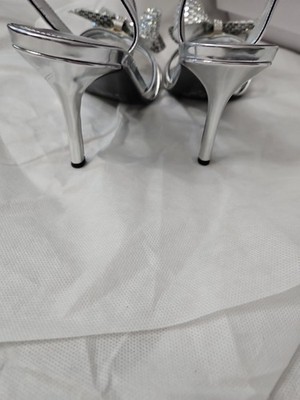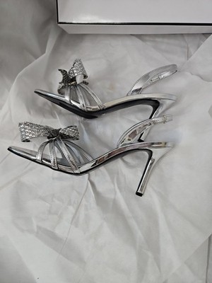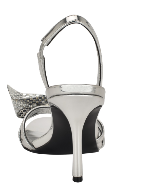 Guess Women's Merle Rhinestone Bow Embellished Slingback Pumps Silver Mirror 7M