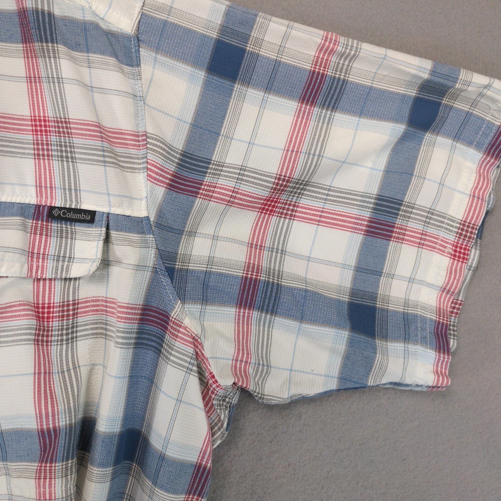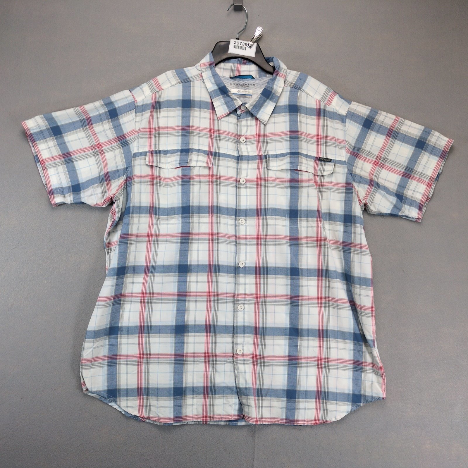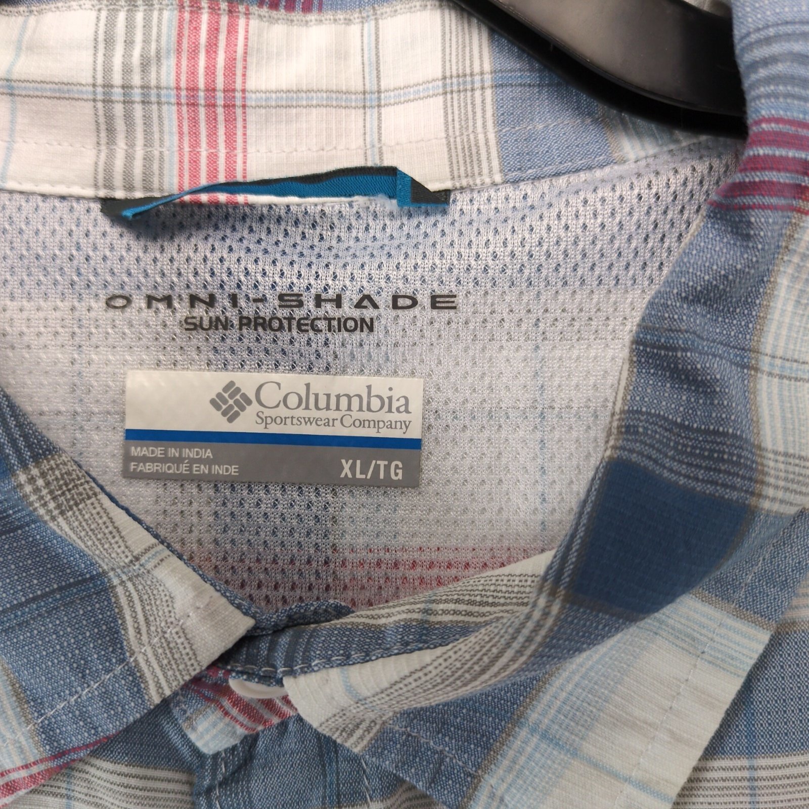 Columbia Sportswear Omni-Shade Blue Plaid Button Up Shirt Men's XL Short Sleeve