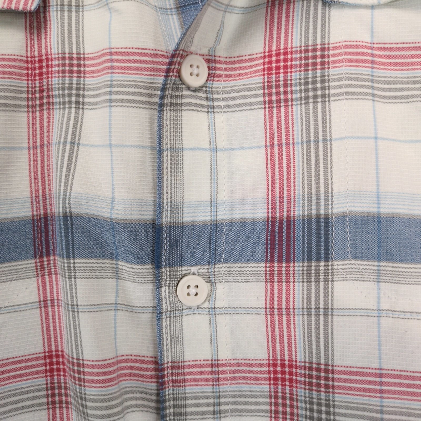 Features: Short Sleeve, Relaxed Fit, Collared, Easy Care, Pockets, Stretch, Lightweight, Breathable, Packable, UV Protection, Plaid Pattern, Logo, Button Closure, Machine Washable