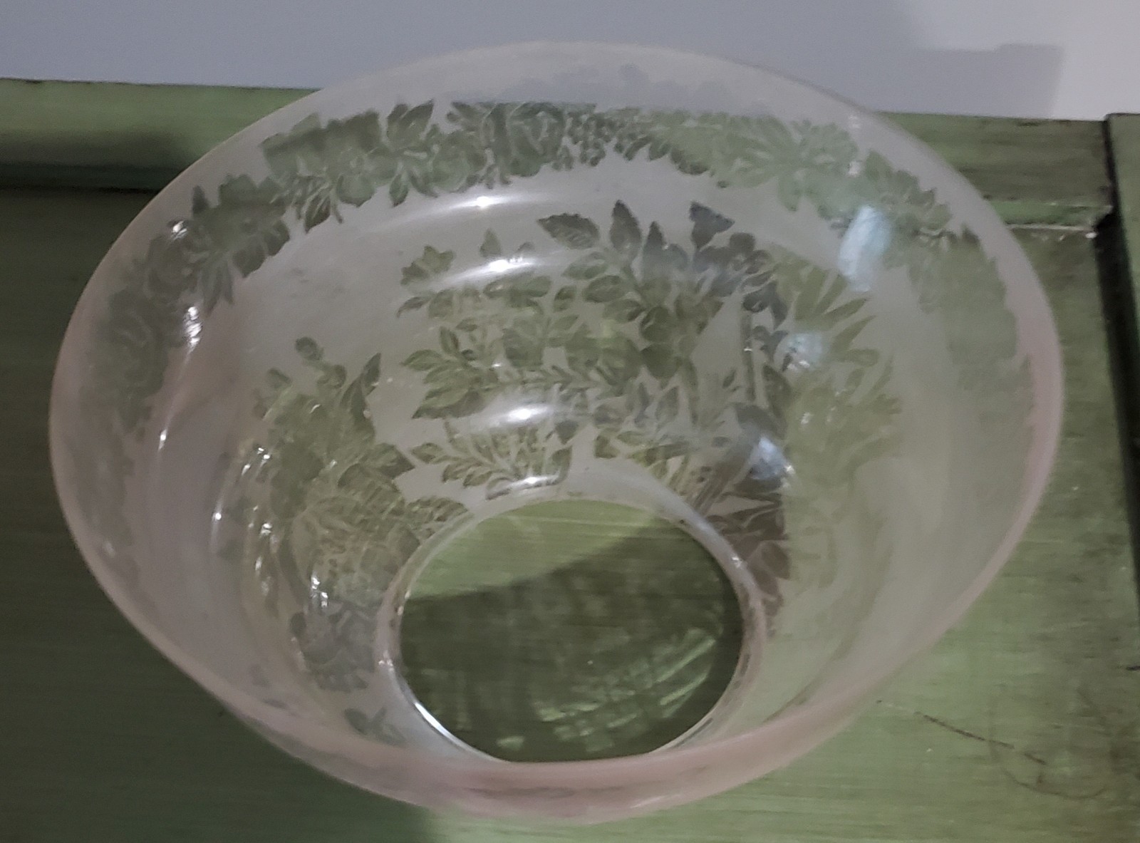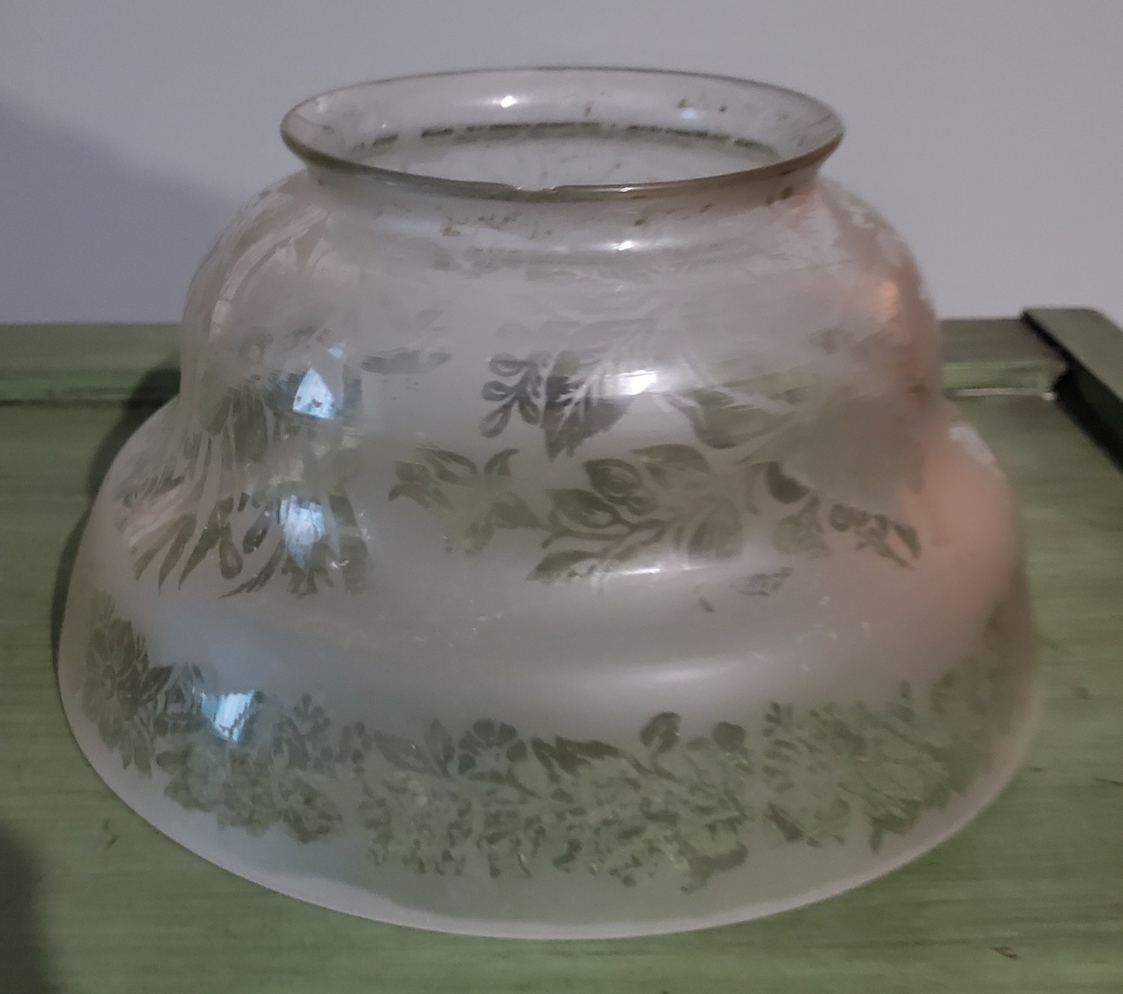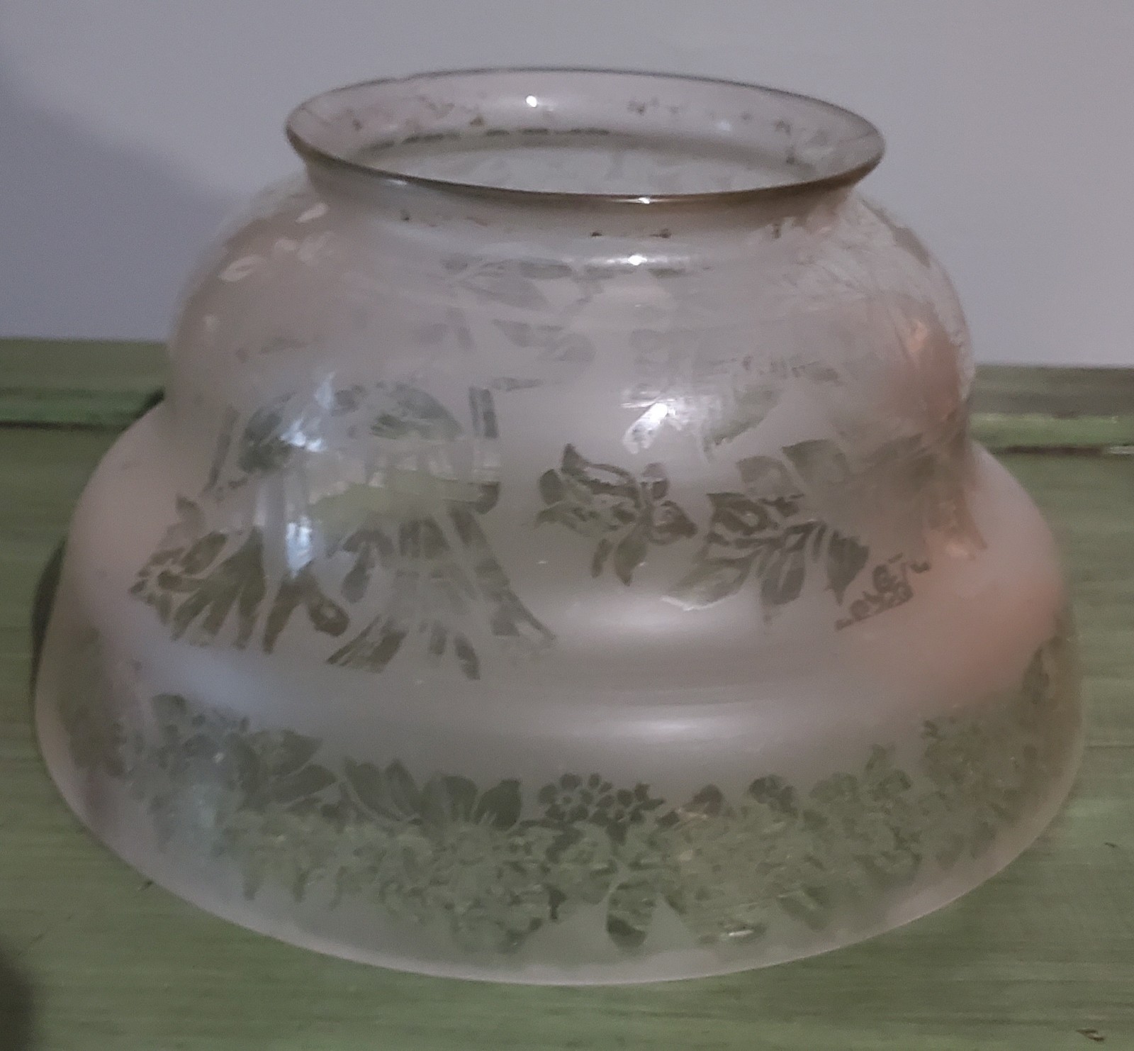 Beautifully etched floral glass antique light/lamp shade. No cracks or chips.
