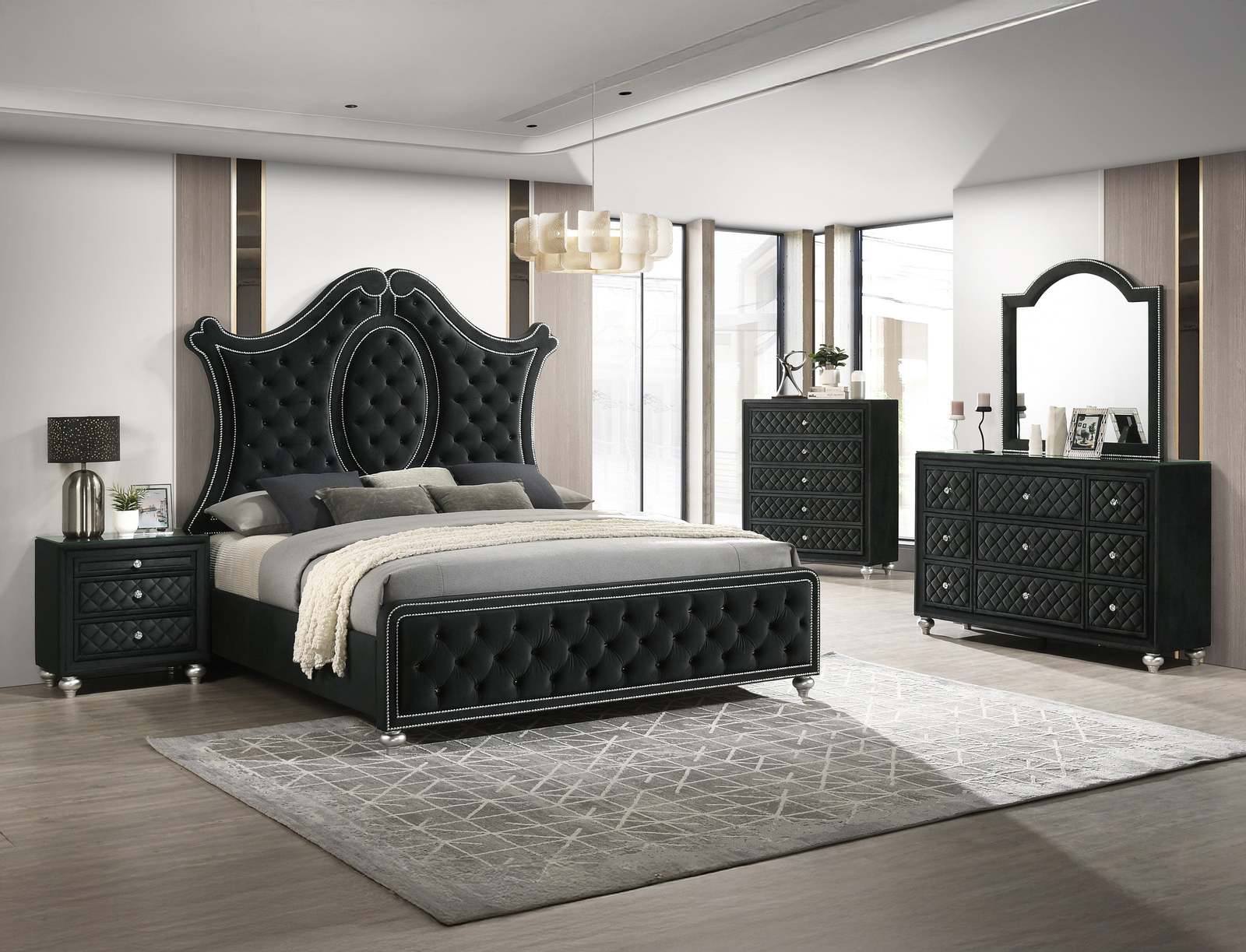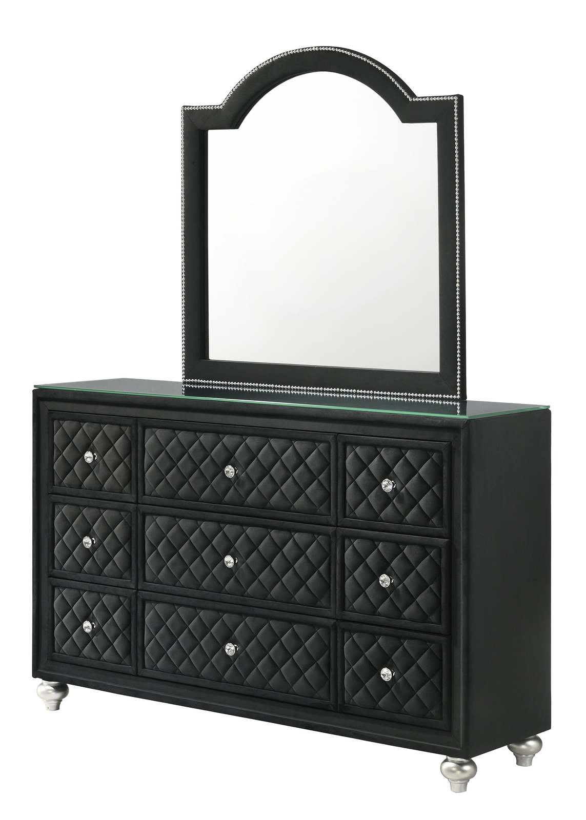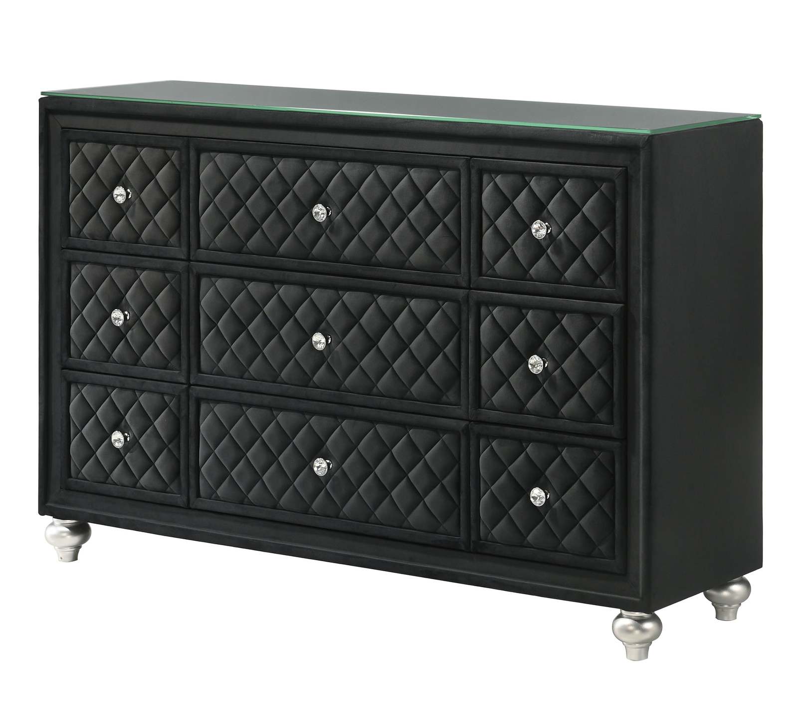 Black Velvet Tufted 9-Drawer Dresser w/ Crystal Knobs