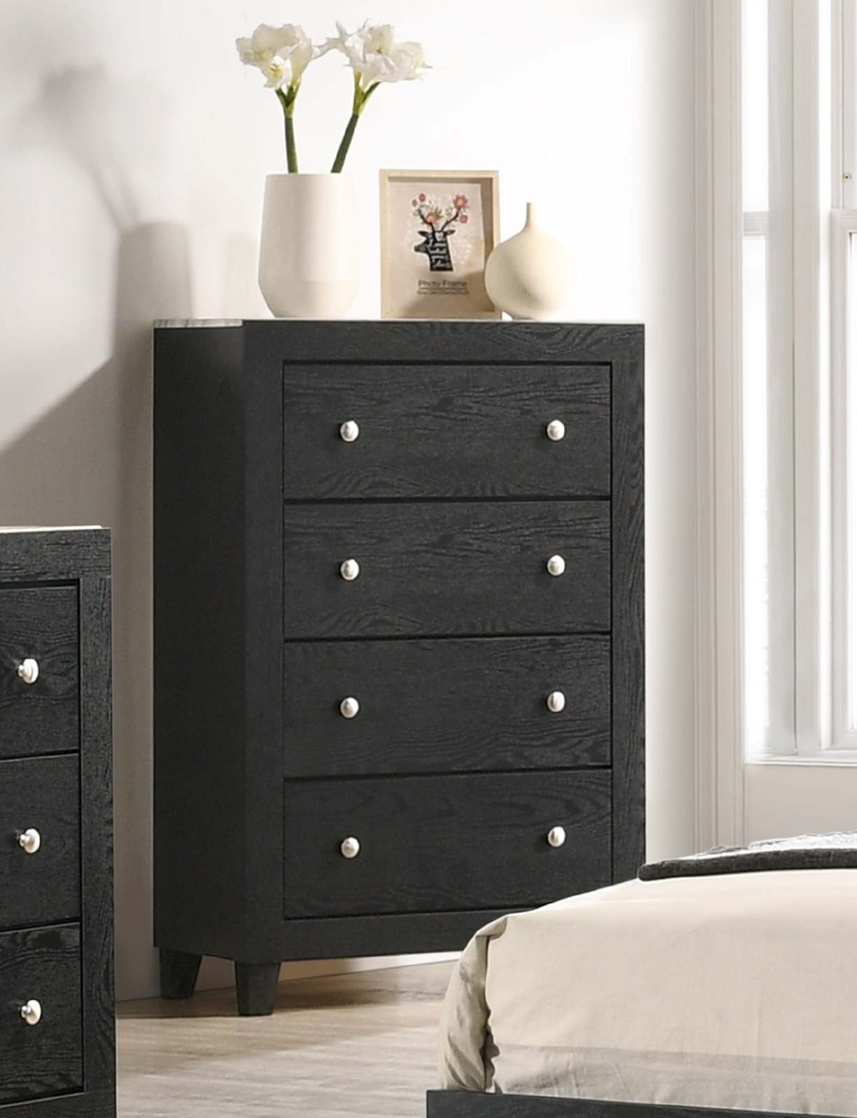 Reach your design goals in your bedroom with this Chest. This chest features a Black finish. Incorporate this into your bedroom to give your space a refined touch.