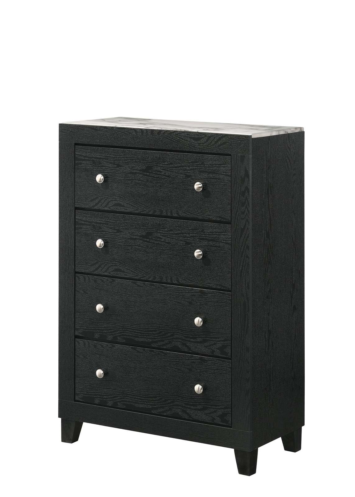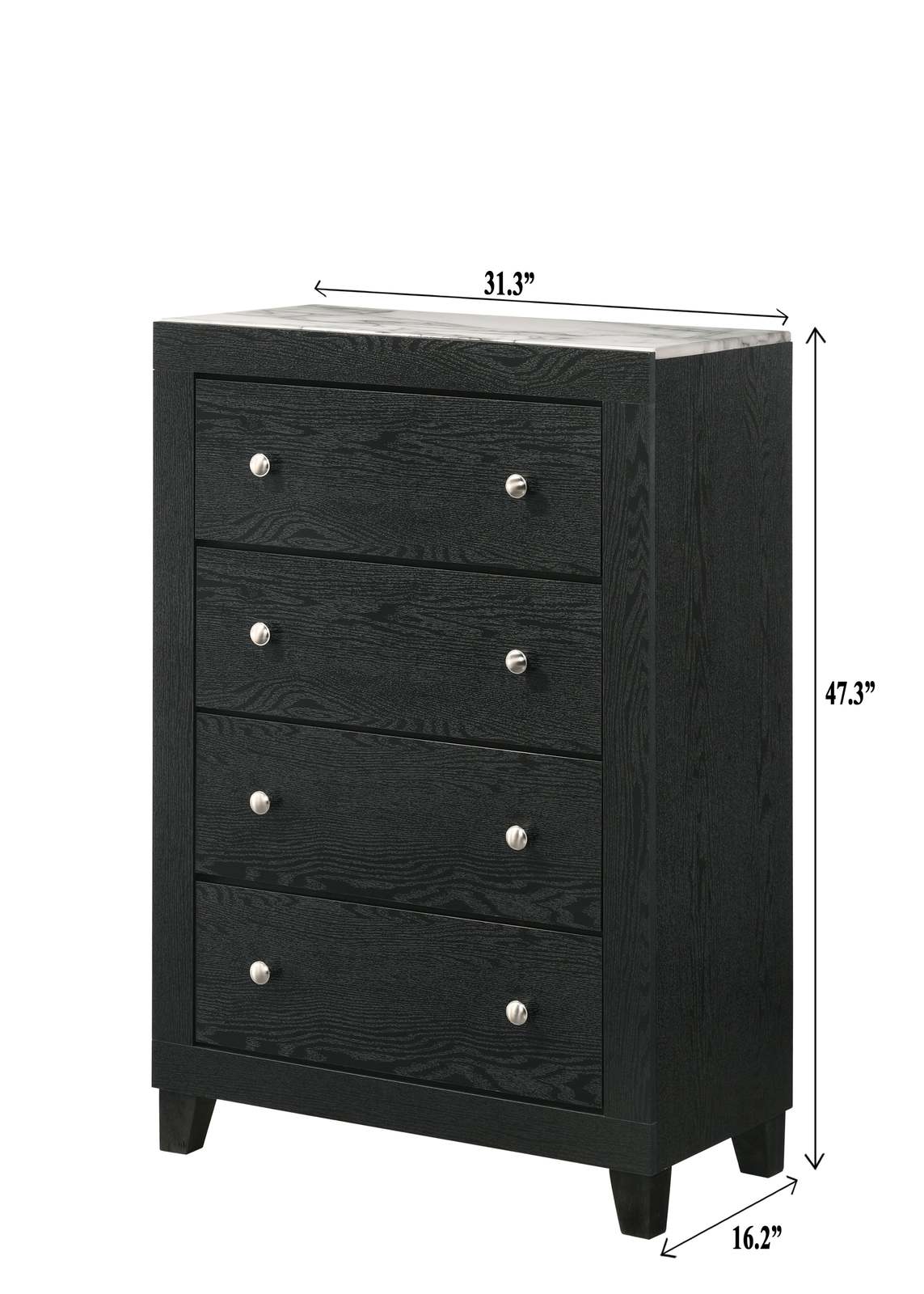 White Faux Marble 4-Drawer Tall Chest Black Modern Bedroom Furniture