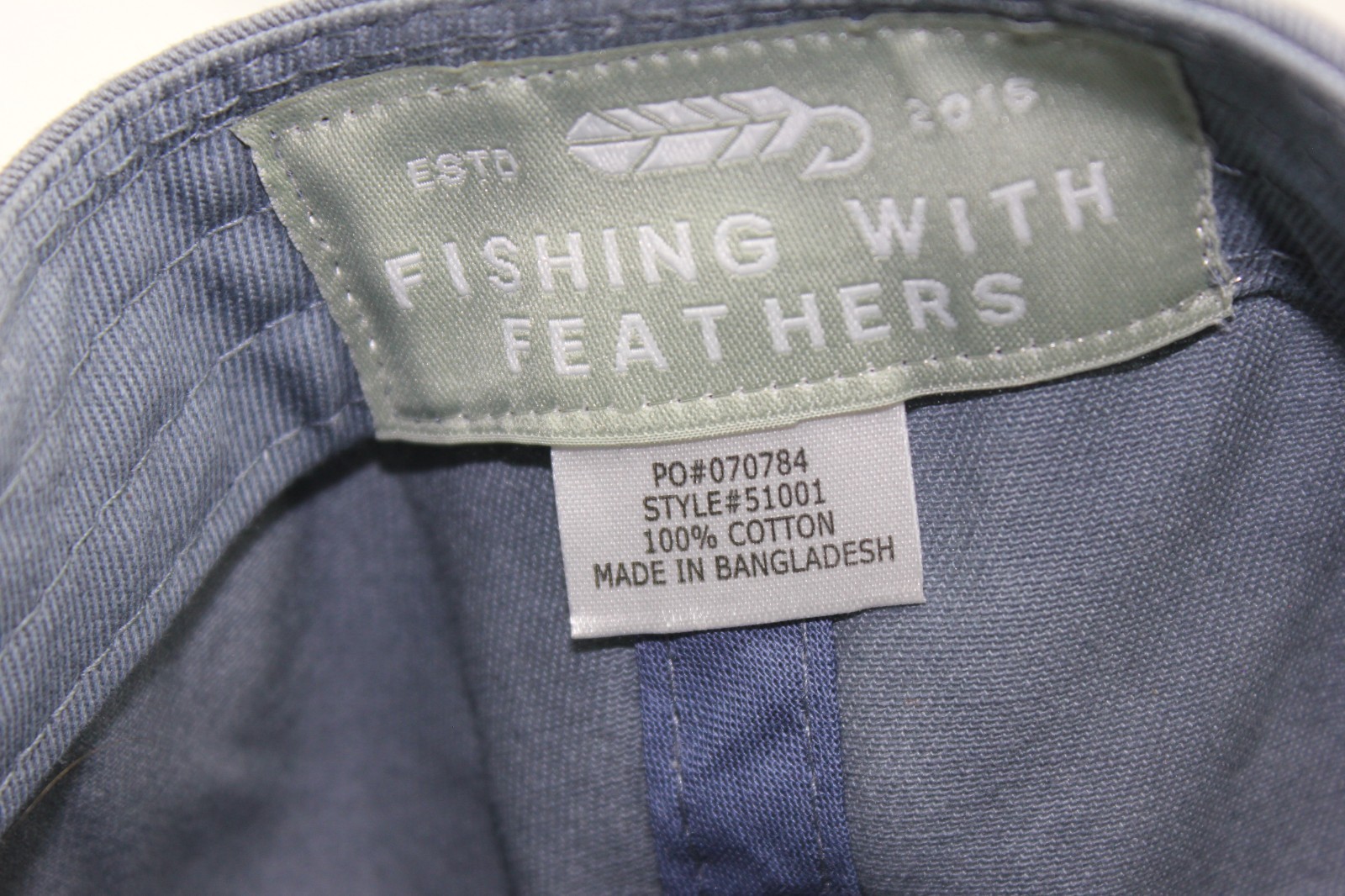 Fishing With Feathers Gray Hat Cap Adjustable Fit Hook And Loop Closure
