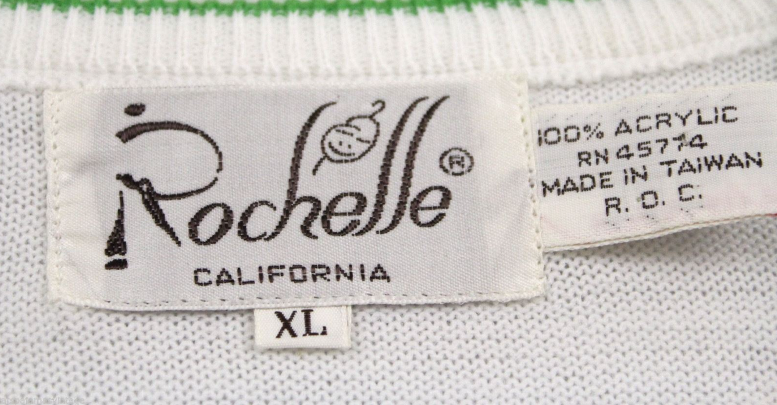 Rochelle sweaters of the 1970s often featured whimsical embroidered motifs. Novelty designs like these turtles are highly collectible among fans of retro cute, kitsch, and pop culture knits.