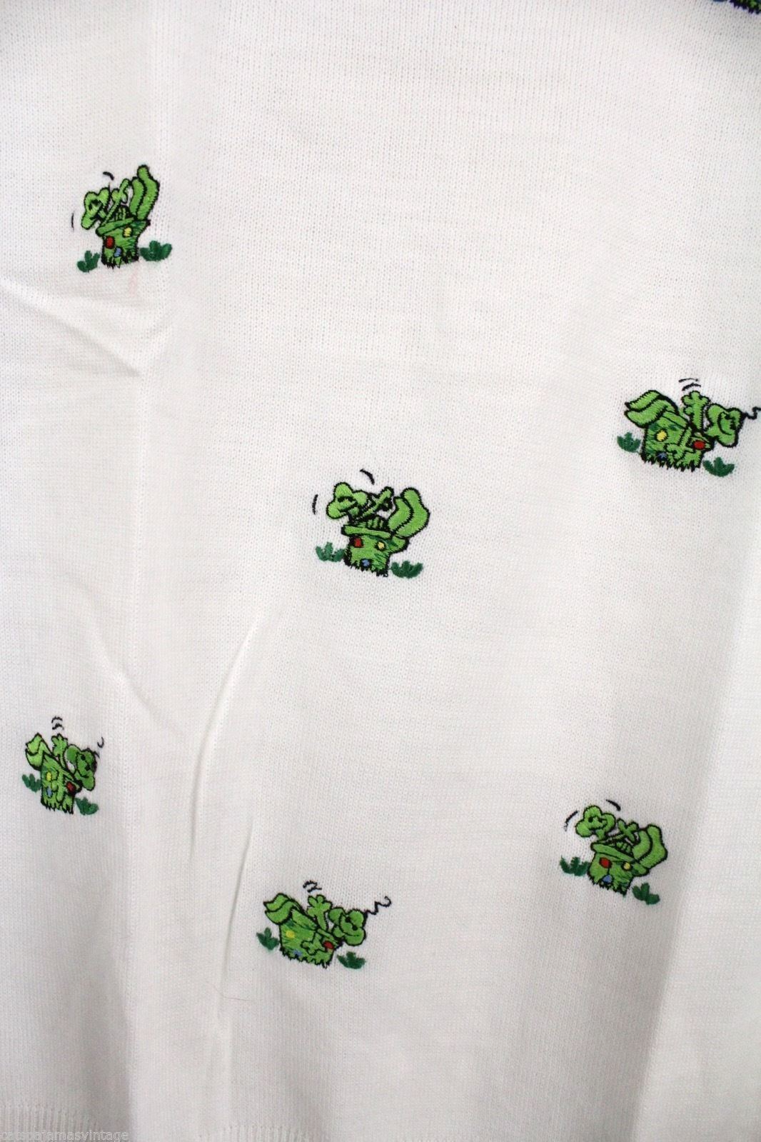 VTG 70s Rochelle White Acrylic Sweater NWT Green Embroidered Turtles Womens M