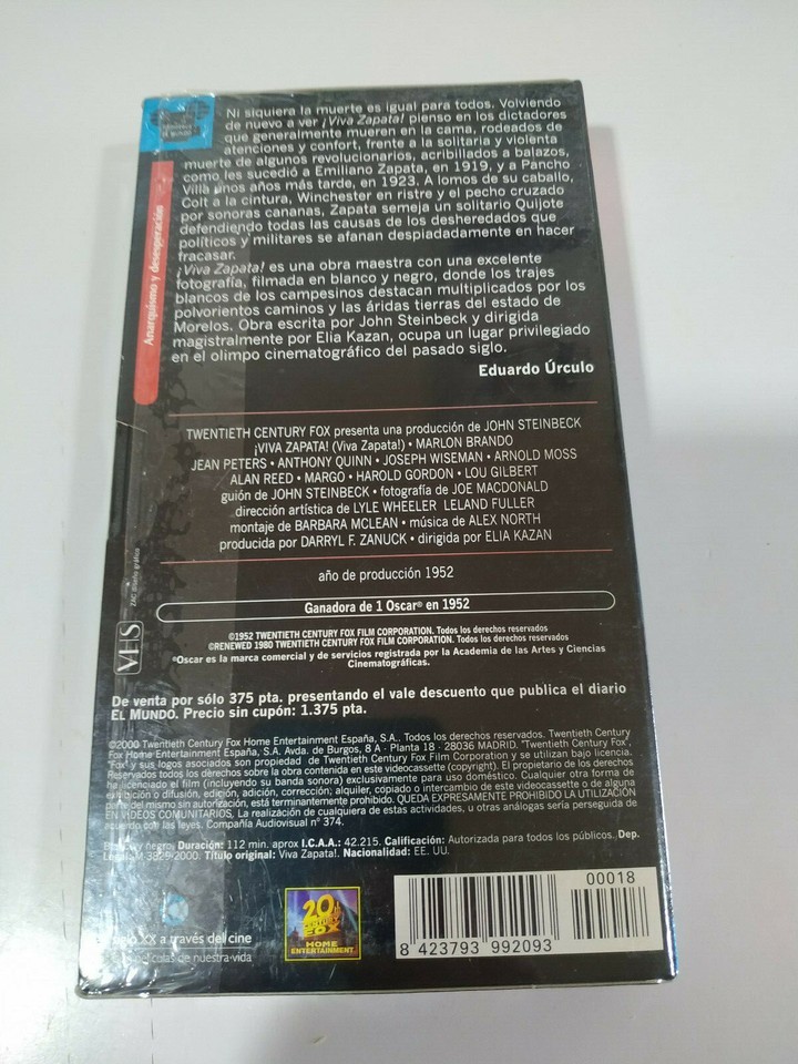 Viva Zapata ! Elia Kazan Marlon Brando - Cassette VHS espagnole neuve - 2T