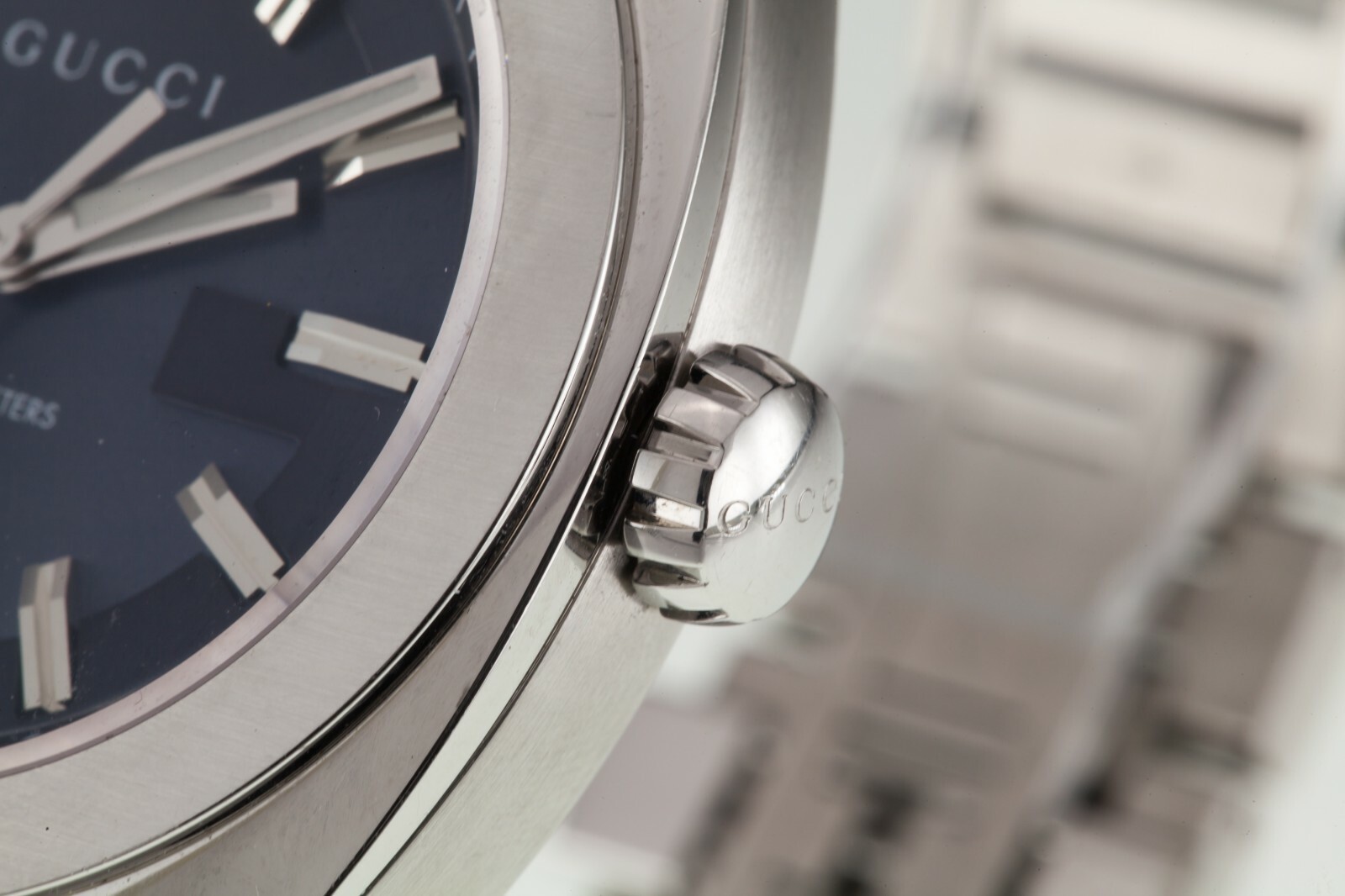Gucci Men's Stainless Steel Quartz Watch w/ Satin Blue Dial and Date 142.2