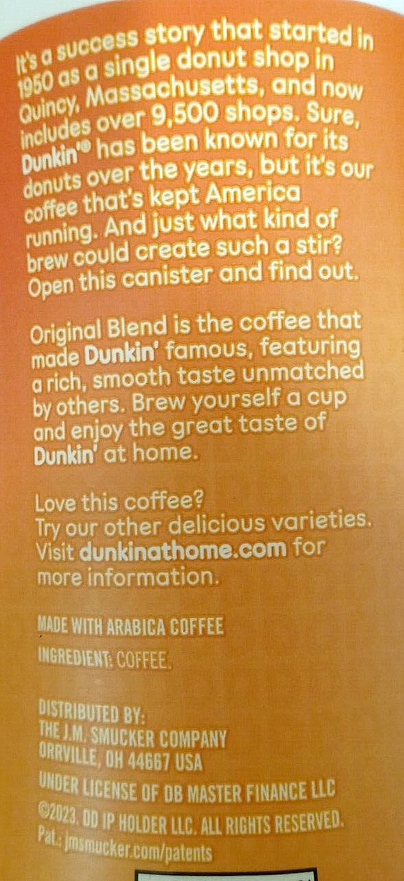 Dunkin' Donuts ORIGINAL BLEND Medium Roast Ground Coffee 45 oz |