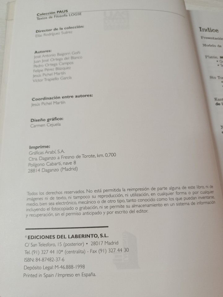 Pau Philosophy, Booking Book Baccalaureate, Selectivity Madrid, Labyrinth 1998 Book, Classical and Modern Philosophy, Educational Text, Pau Preparation, Spanish Educational Book, Old de Book, Ortega Philosophy, Nietzsche Philosophy, Second Hand Baccala