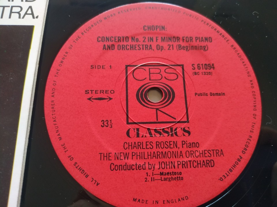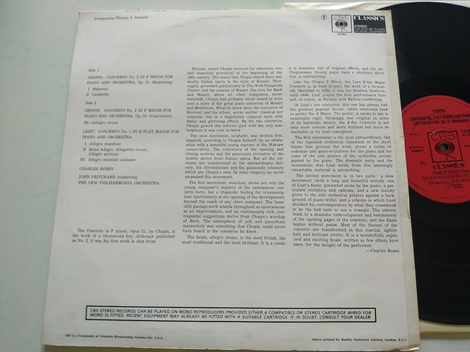 Charles Rosen Chopin Liszt Concerto no 1 2 CBS - LP 12"vinyl VG/VG