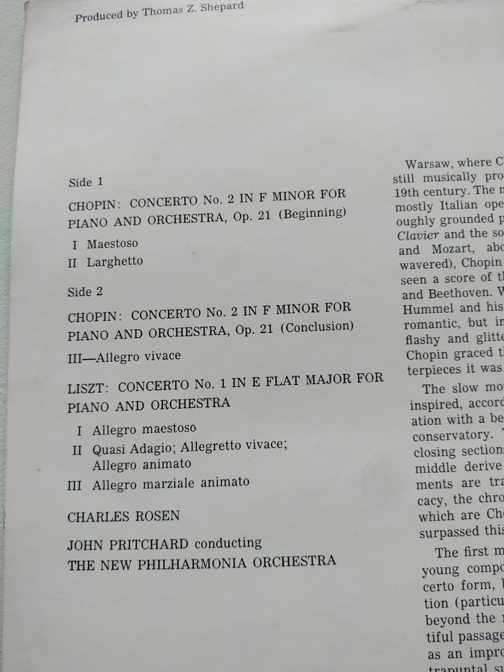 Charles Rosen Chopin Liszt Concerto no 1 2 and 43 similar items