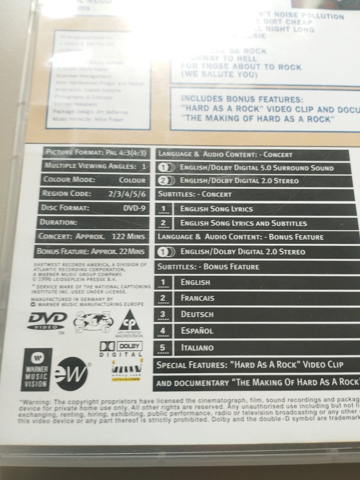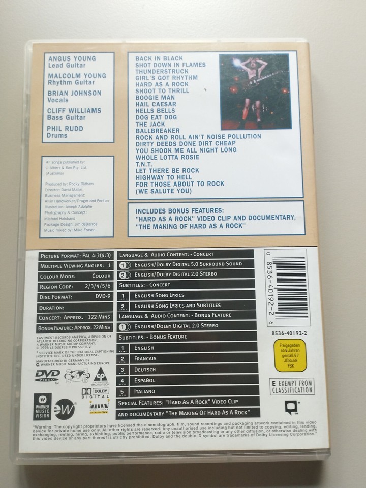 Ac-Dc No Bull Bullring Sales July 1996 - DVD Region All