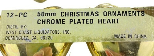 WCL Christmas Ornaments 12 Chrome Plated Hearts 50mm