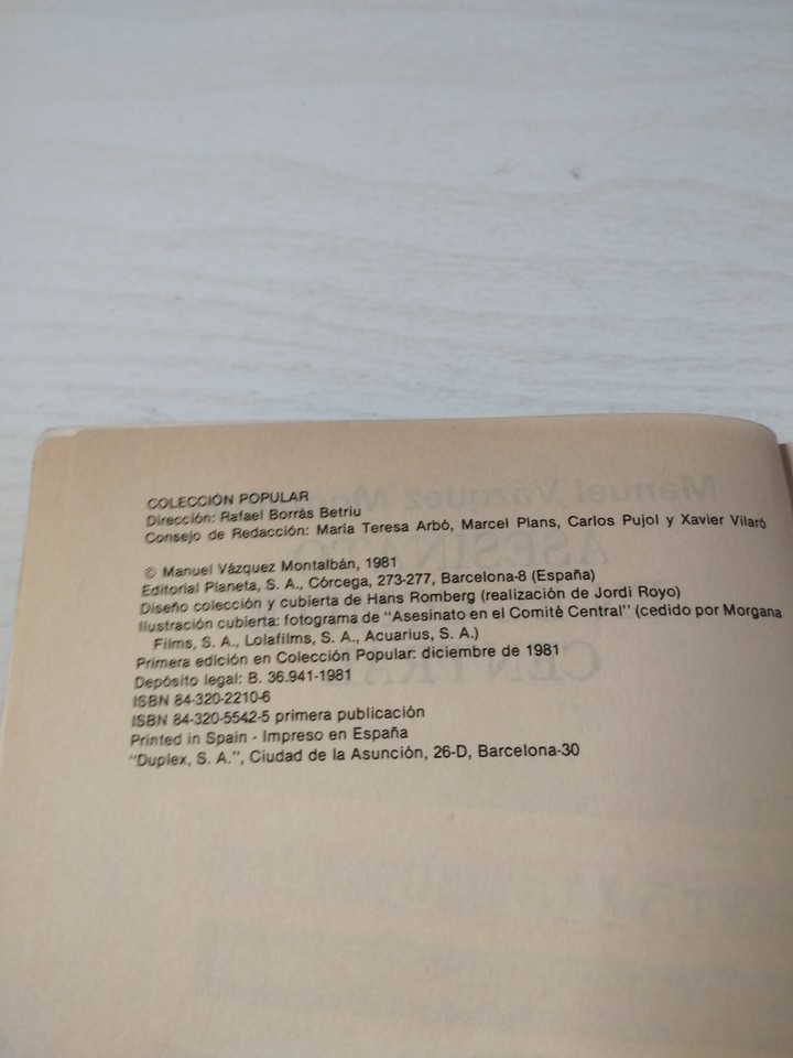 Murder in the Central Committee Manuel Vazquez Montalban 1981 - Spanish BOOK-...