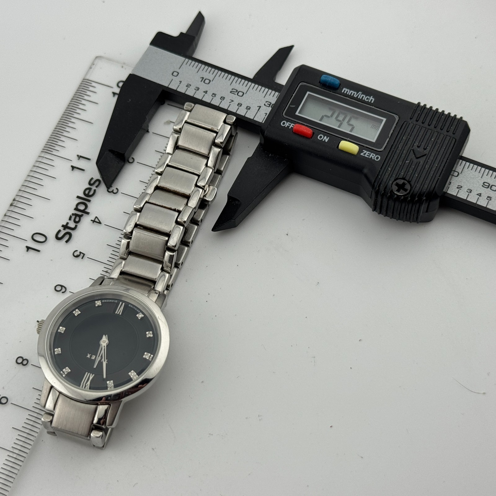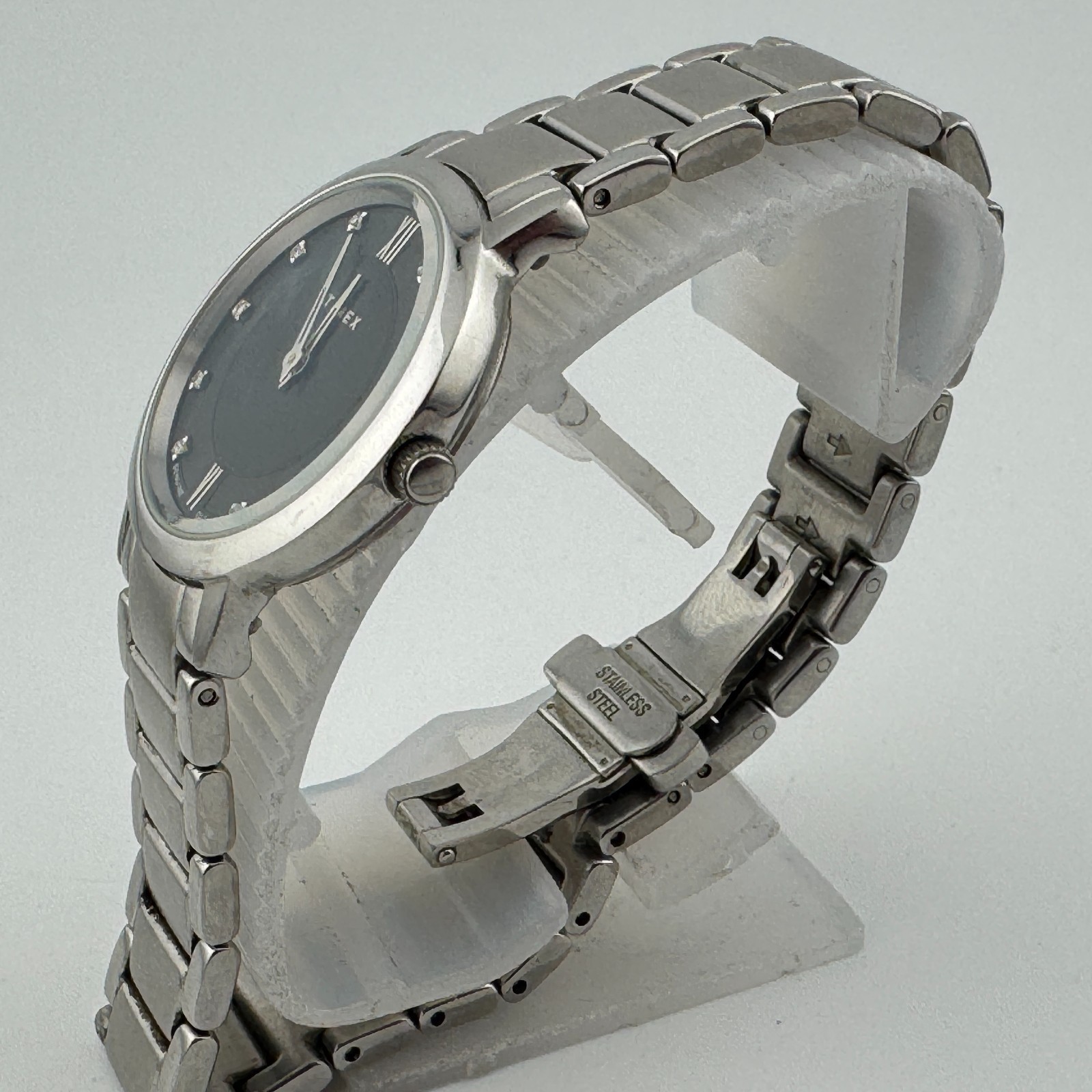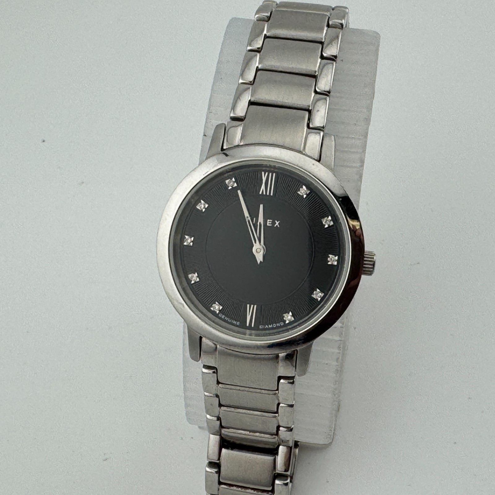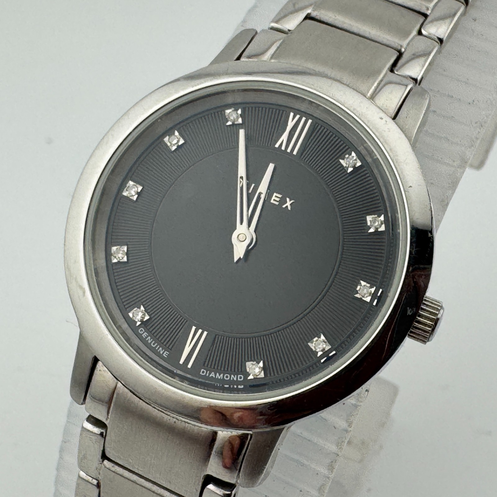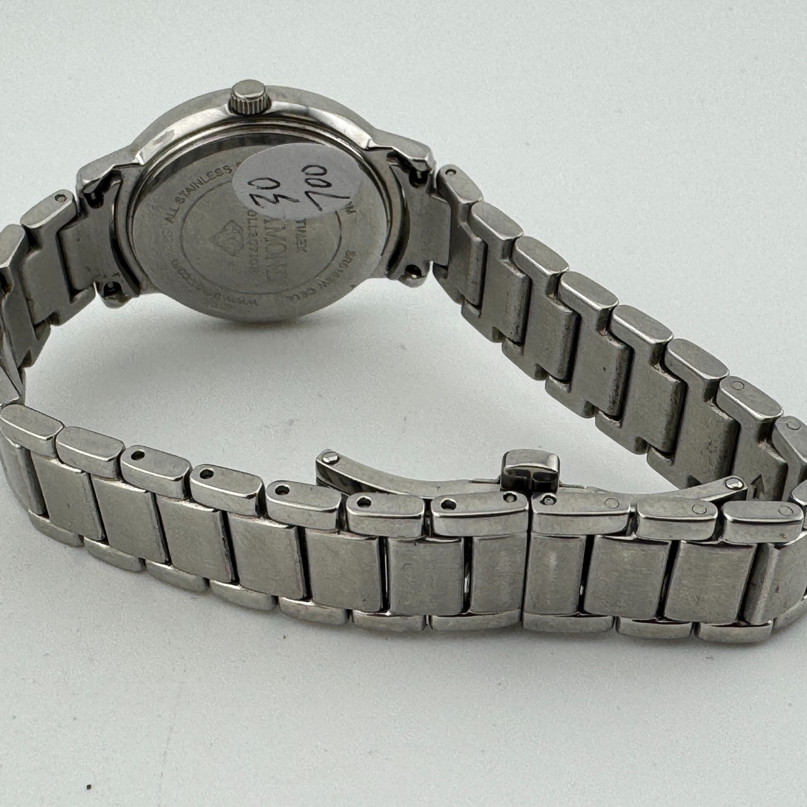 Timex Quartz Watch Women Silver Steel 10 Genuine Diamonds Analog New Battery 7"