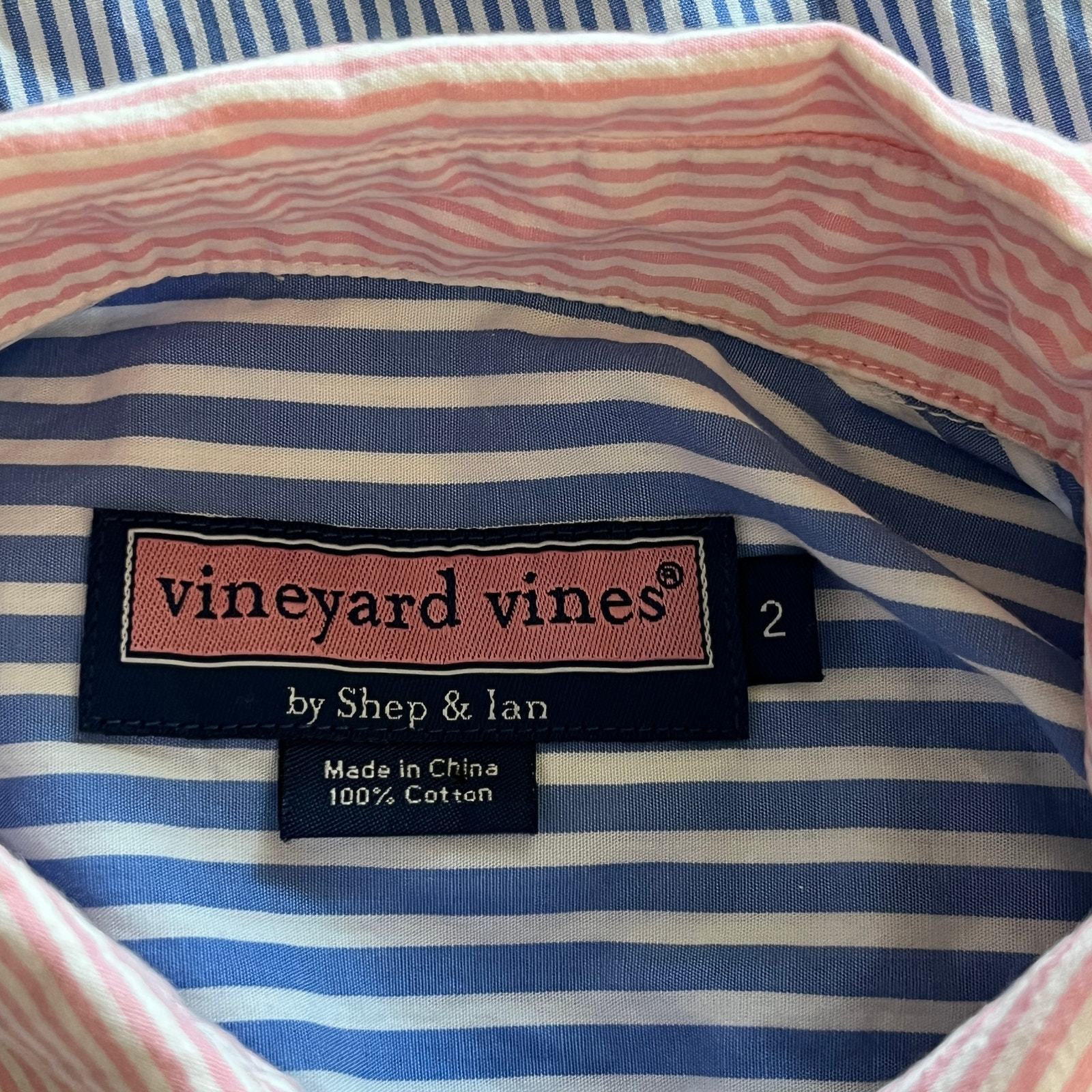 Vineyard Vines Blue White Stripe Pink Trim Ruffle Button Front Shirt Size 2