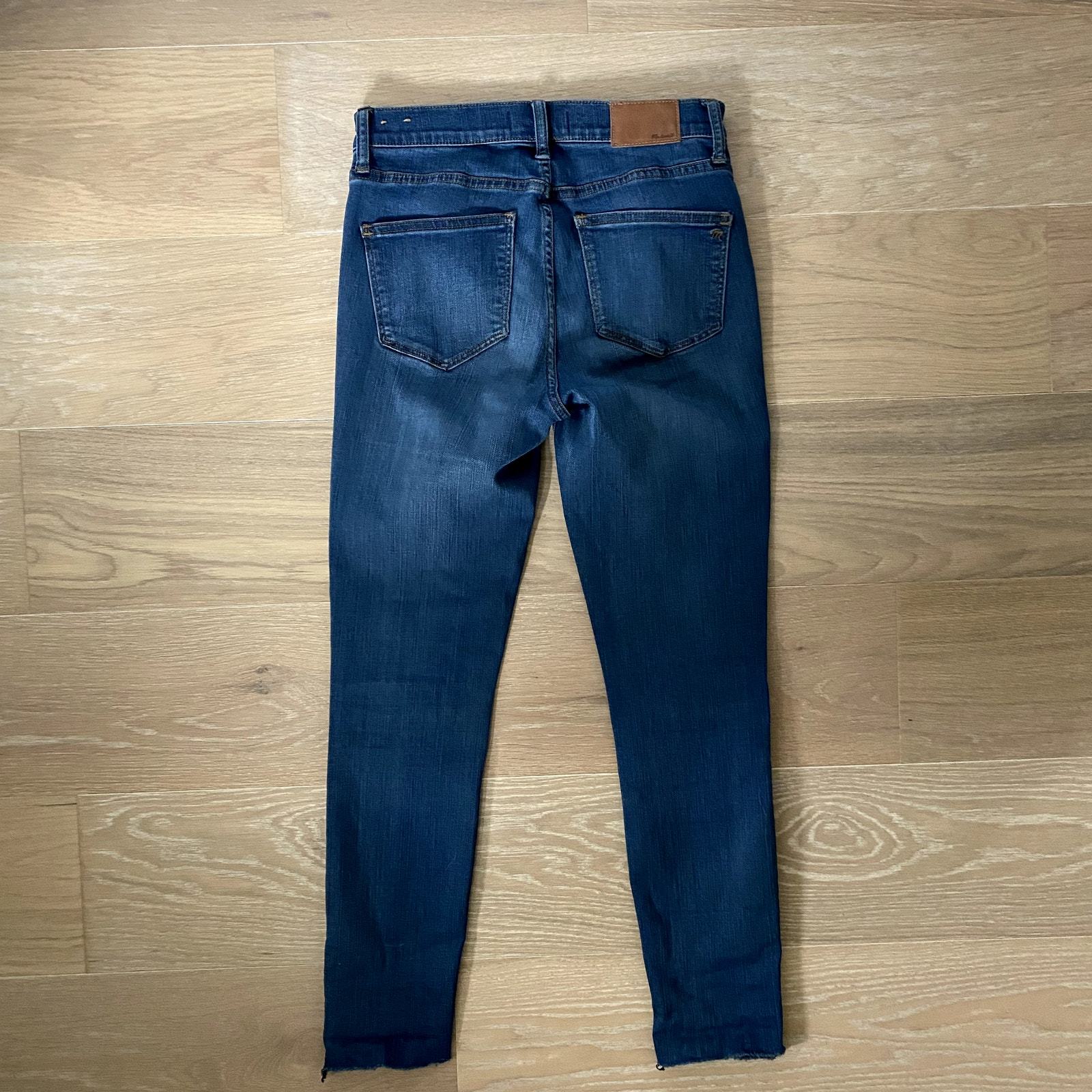 Madewell "Roadtripper" jeans. The jeans are in excellent, condition. They have been cut to feature a raw hem. The jeans have a lot of stretch to them.