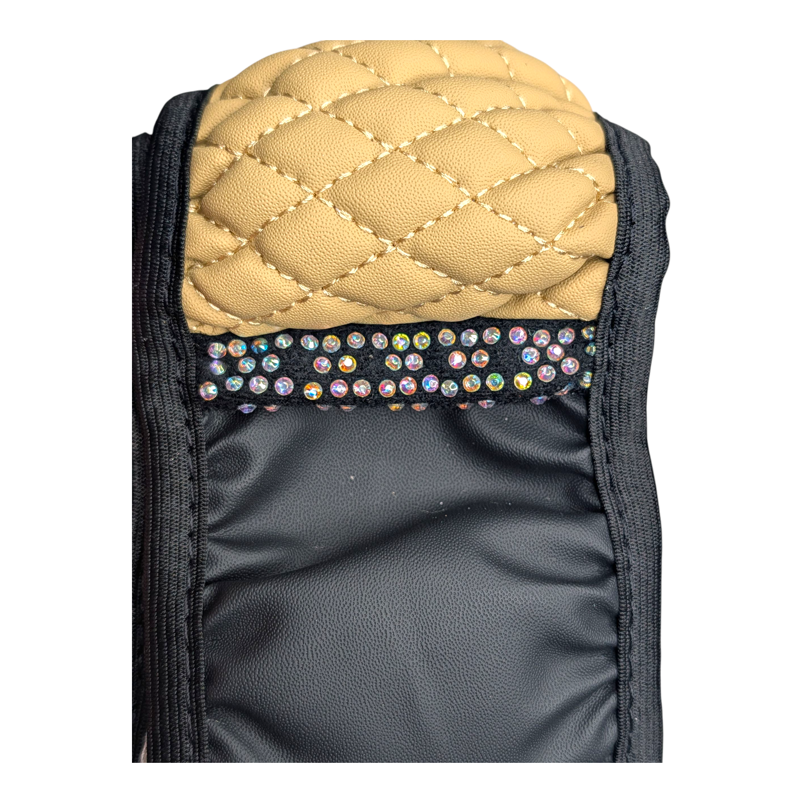 Black & Beige Faux Leather Bling Rhinestone Steering Wheel Cover 14.6"-15" New