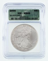 2000 $1 Silver American Eagle Valutato Da ICG Come MS-69! Splendido Aquila!