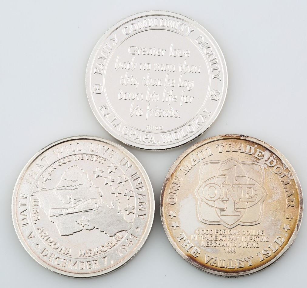 Lotto Di 3 Hawaiano .999 Argento Rotonda 2007 Kalaupapa 1999 Maui 1991 Perle