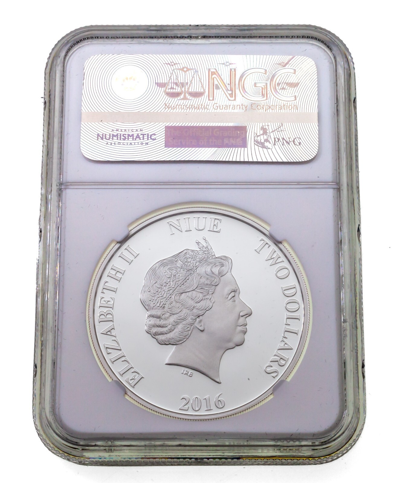 2016 Niue S $ 2 Star Wars Classico Principessa Leia NGC PF70 Ultra Cammeo Prime