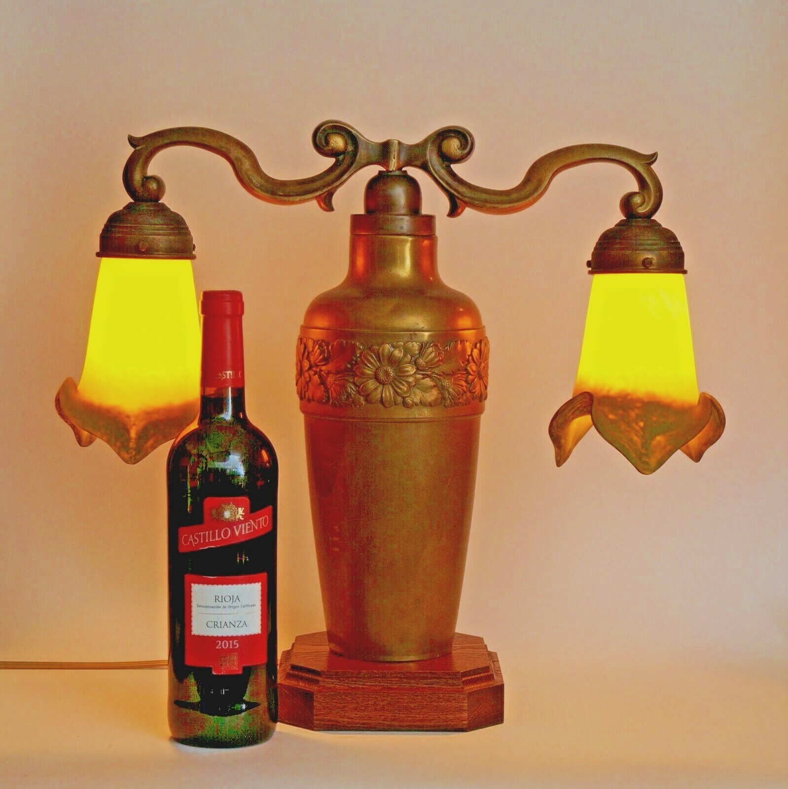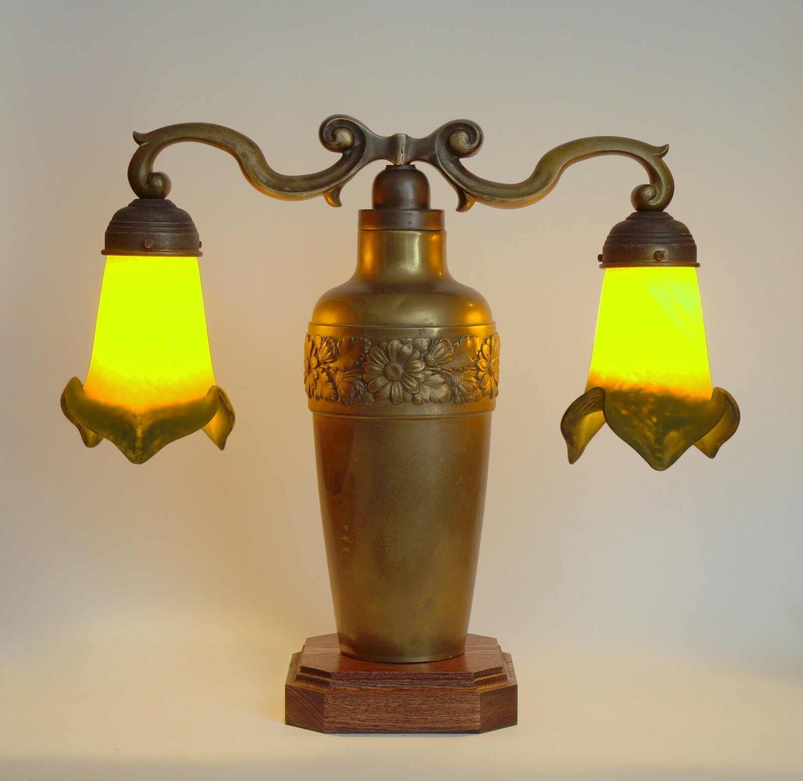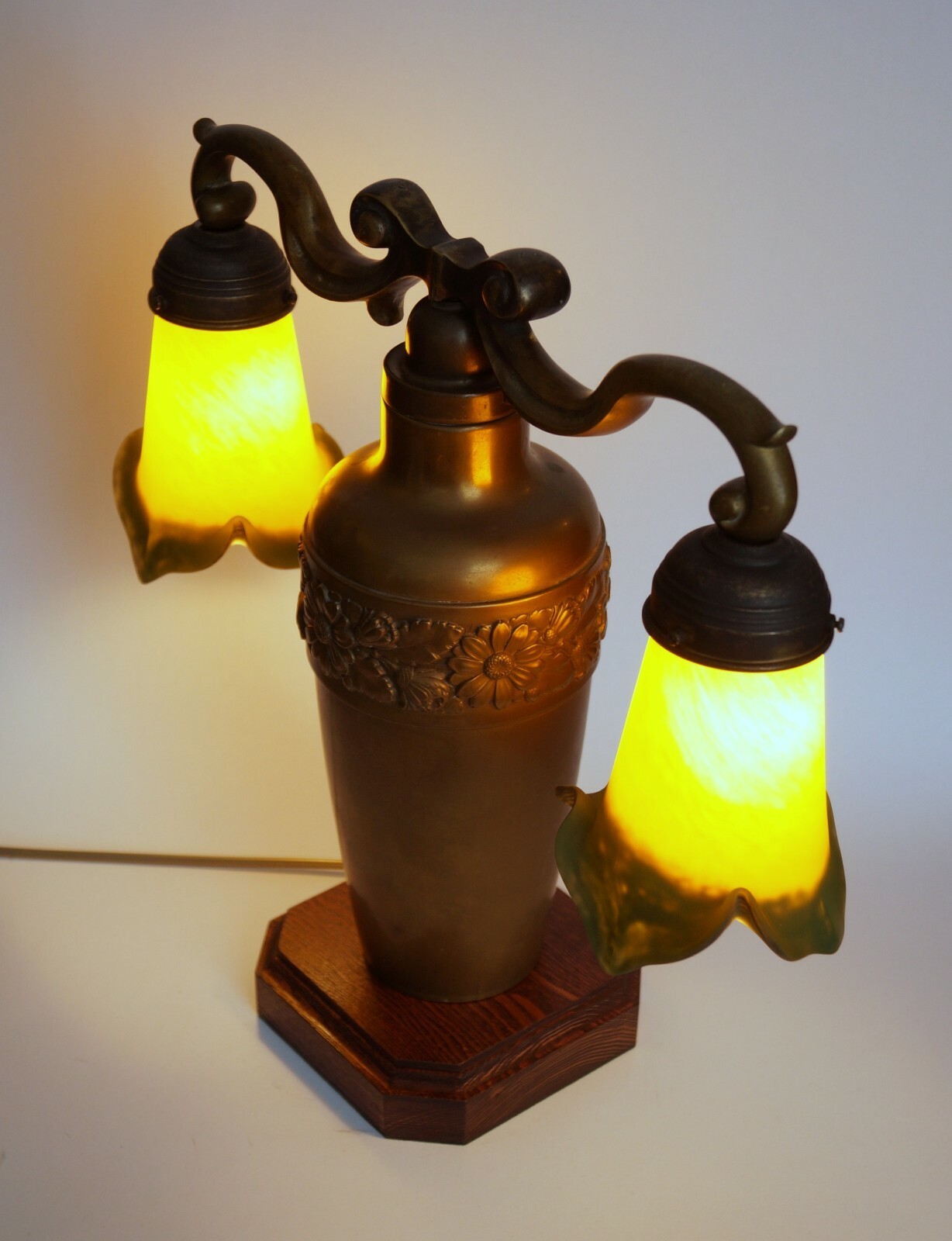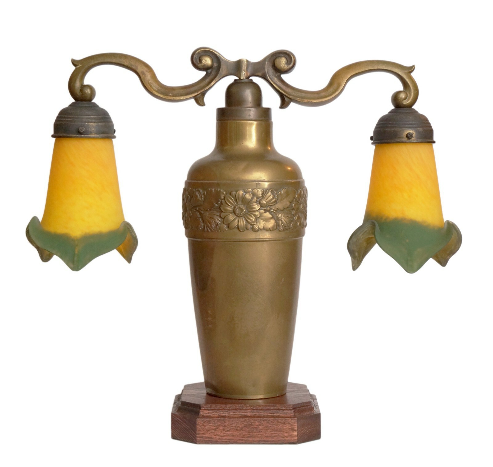 Art Nouveau Lamp Light "TWO TULIPS" Brass Lamp Berlin Unique Verre