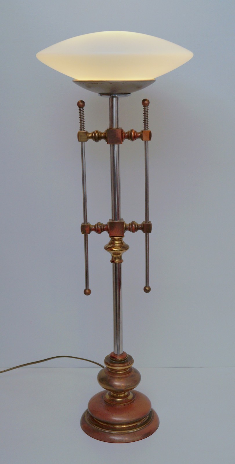 Unique, design brass chrome gear, total height approx. 81 cm, new electrics