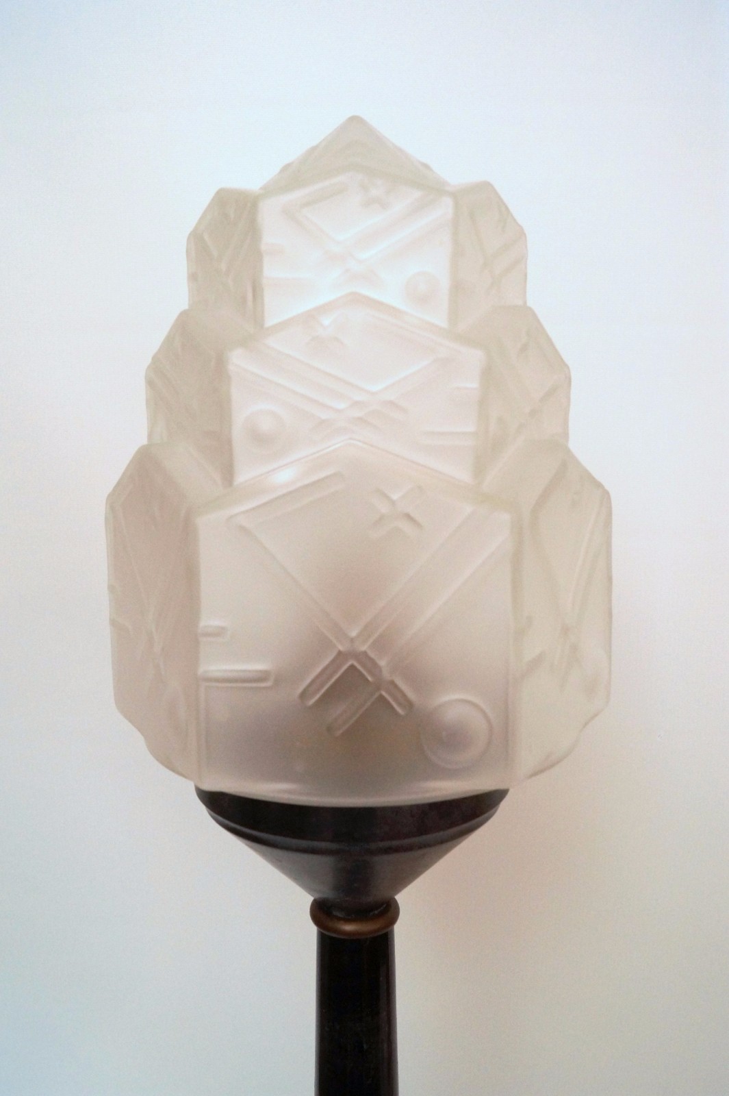 Important: We recommend using only LED lamps (filament bul!) For each of our lights. In addition to that of up to 12 times higher efficiency, the very low heat development of an LED bulb ensures the lifespan of the electrical system and the precious original glasses of its lamp. LED lamps available everywhere or here . Also suitable for LED/energy-saving bulbs with higher light output. Sale without decoration and lamp! Further Art Nouveau lights in our shop.