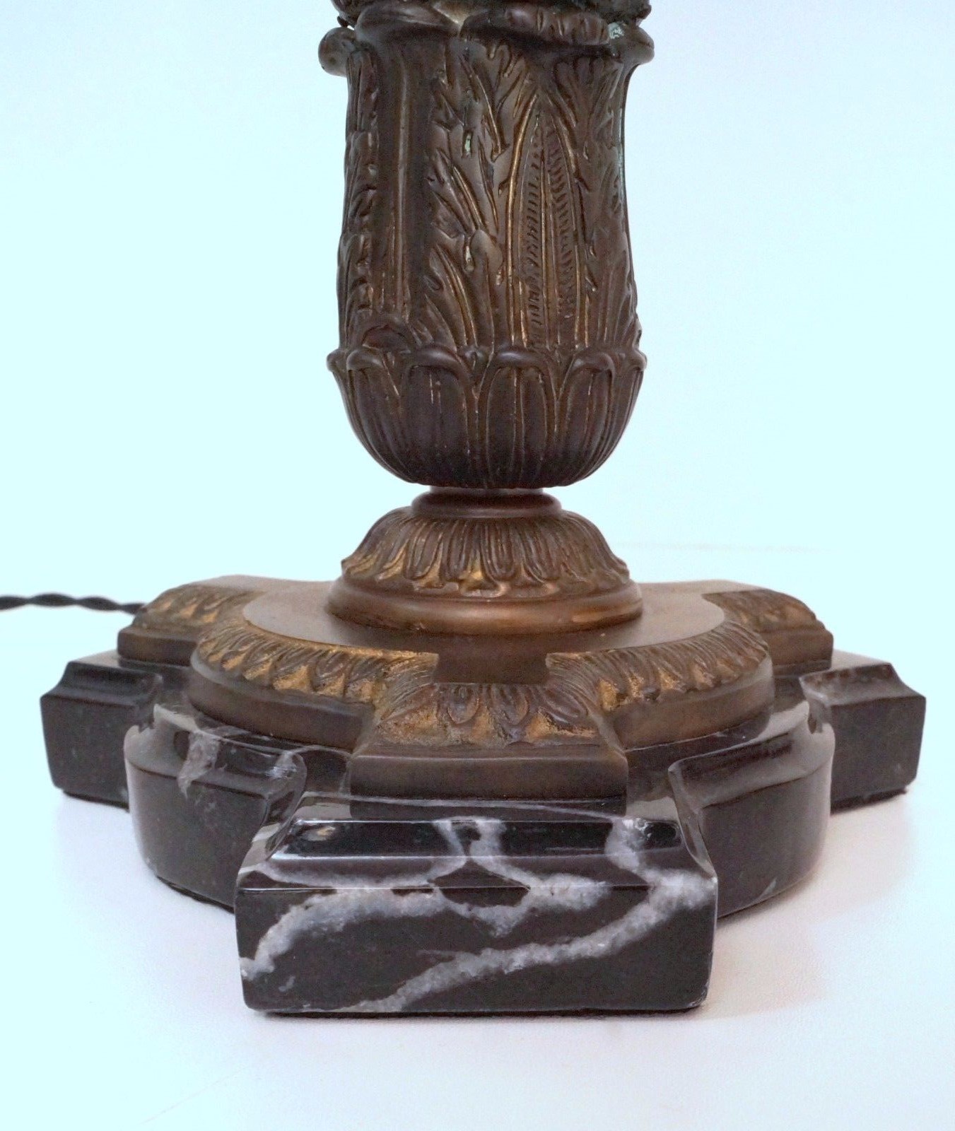 Unique, around 1930-1940, marble/bronze gear, total height approx. 75 cm, new electrics